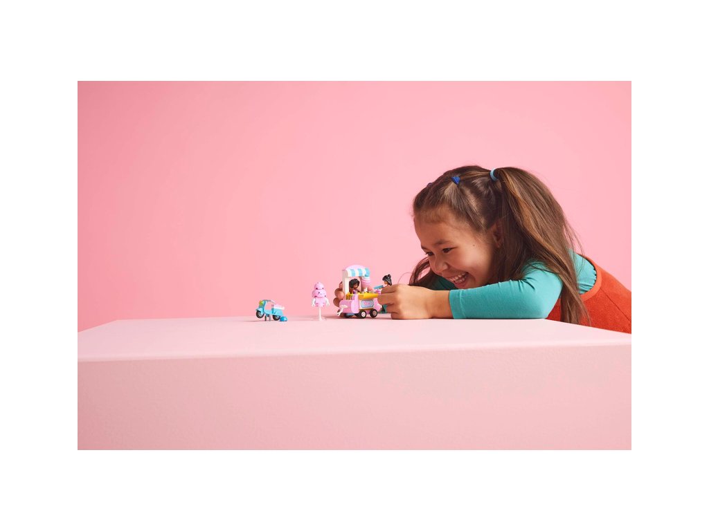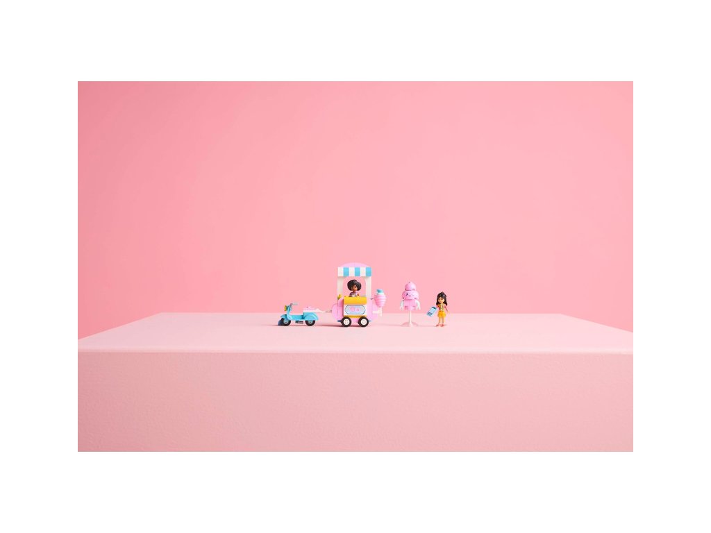 Holky, kluci a malí stavitelé, kteří milují kreativní hraní, si s touto stavebnicí užijí hodiny hraní vlastních zábavných příběhů. Vymyslí příběh Liann a Jamily, které rády tráví čas u stánku s cukrovou vatou. Součástí vozíku LEGO na kolečkách je miska s ozdobami na přípravu cukrové vaty. Nechybí ani pokladna a peníze, takže si děti můžou zinscenovat různé interakce se zákazníky.