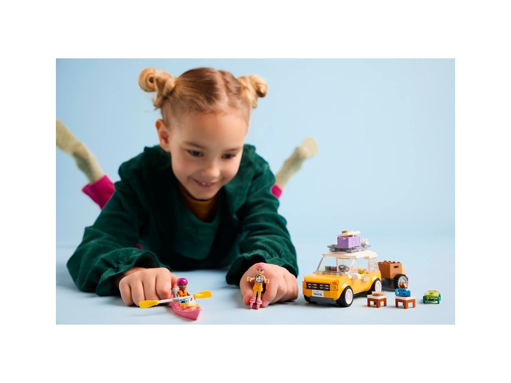 - Sestavitelné vozidlo LEGO® s přívěsem – Bavte se při stavění modelu auta a pak do něj sbalte vše, co kamarádky budou potřebovat během svého dobrodružství, včetně kajaku a chladicího boxu