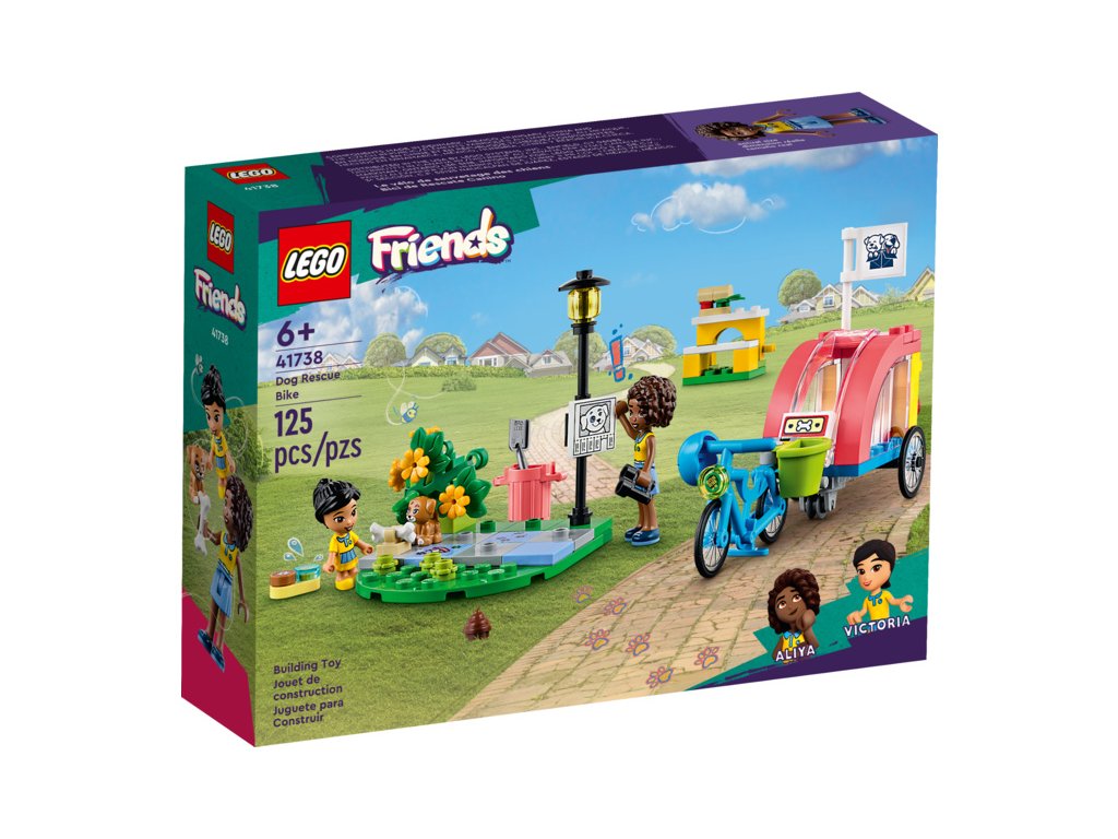 Se stavebnicí Záchrana pejska na kole od LEGO® Friends (41738) si milovníci zvířat od 6 let mohou užít nekonečná dobrodružství. Prozkoumají městečko Heartlake se skautskou vedoucí Aliyou a její mladší kamarádkou Victorií a zkusí ztracené štěňátko najít. Děti si zamilují stopovat ho podle hovínek a stop tlapek! Součástí parádní stavebnice je kolo s vozíkem, který lze otevřít vepředu i vzadu. Nechybí ani malá scéna z parku s lavičkou a křovím, pod kterým se může štěňátko schovat, a navíc spousta dalších doplňků, které inspirují děti k hraní a starání se o chlupáče.