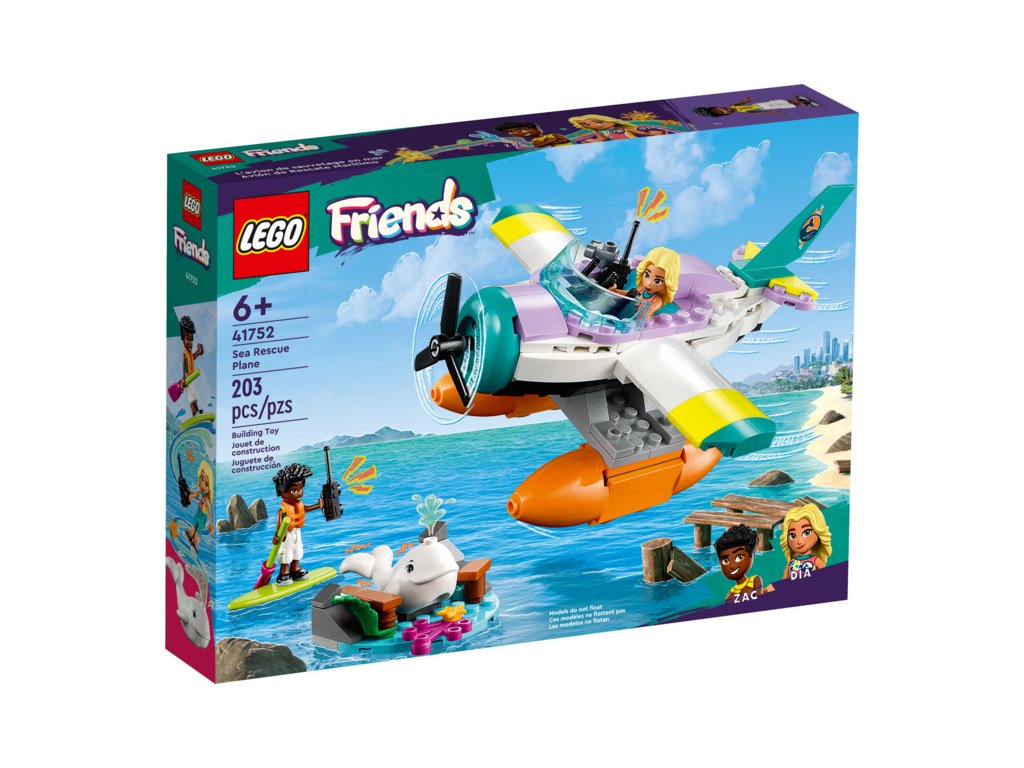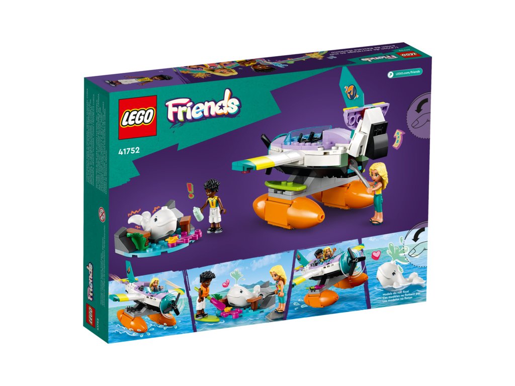 Děti, které mají rády nápadité vyprávění, ve stavebnici LEGO® Friends Záchranářský hydroplán (41752) od 6 let objeví spoustu vzrušujících detailů. Součástí stavebnice jsou 2 minipanenky, běluha a spousta doplňků. Děti mohou pomoct Zacovi a jeho učitelce se záchranou uvězněné běluhy. Sestavitelný hydroplán má 2 sedadla a úložný prostor. Na pláži najdete Zacův paddleboard a dílky, které lze odstranit, aby děti mohly uvězněnému kytovci uvolnit cestu.