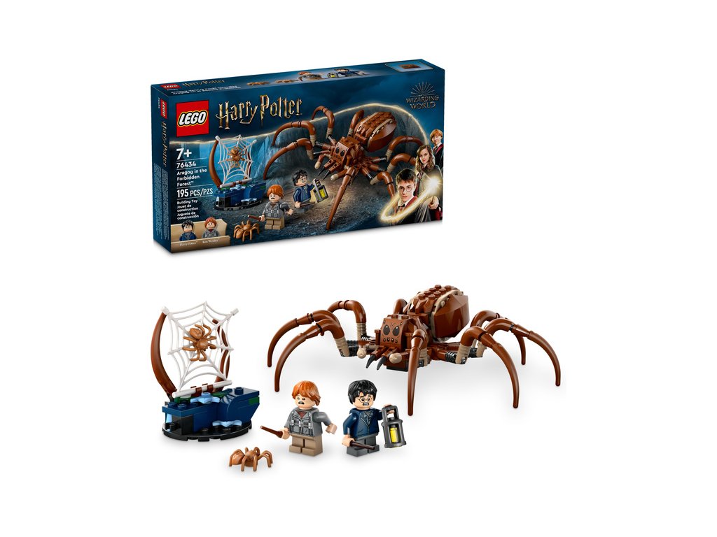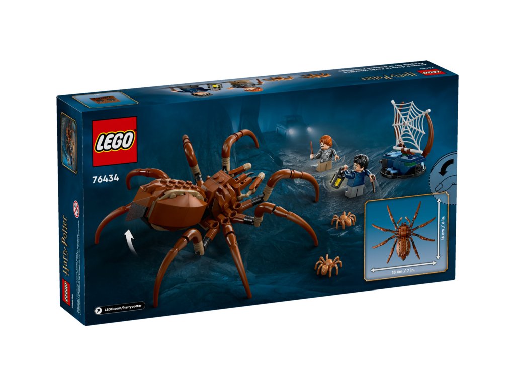 Malí kouzelníci, čarodějnice a mudlové se se stavebnicí s Aragogem (76434) z řady LEGO® Harry Potter™ vydají na kouzelná dobrodružství v Zapovězeném lese. Sada představuje magický dárek pro kluky, holky a fanoušky Harryho Pottera od 7 let. Součástí je dosud největší a nejrealističtější figurka Aragoga z kostek LEGO s pohyblivýma nohama, tesáky a makadly a minifigurky Harryho Pottera a Rona Weasleyho, z nichž má každý veselý a vyděšený obličej, a navíc hůlky a lucerna. Nechybí ani malá sestavitelná scéna ze Zapovězeného lesa, 2 figurky pavoučích mláďat a pavučina, která přináší ještě více kouzelných herních možností.