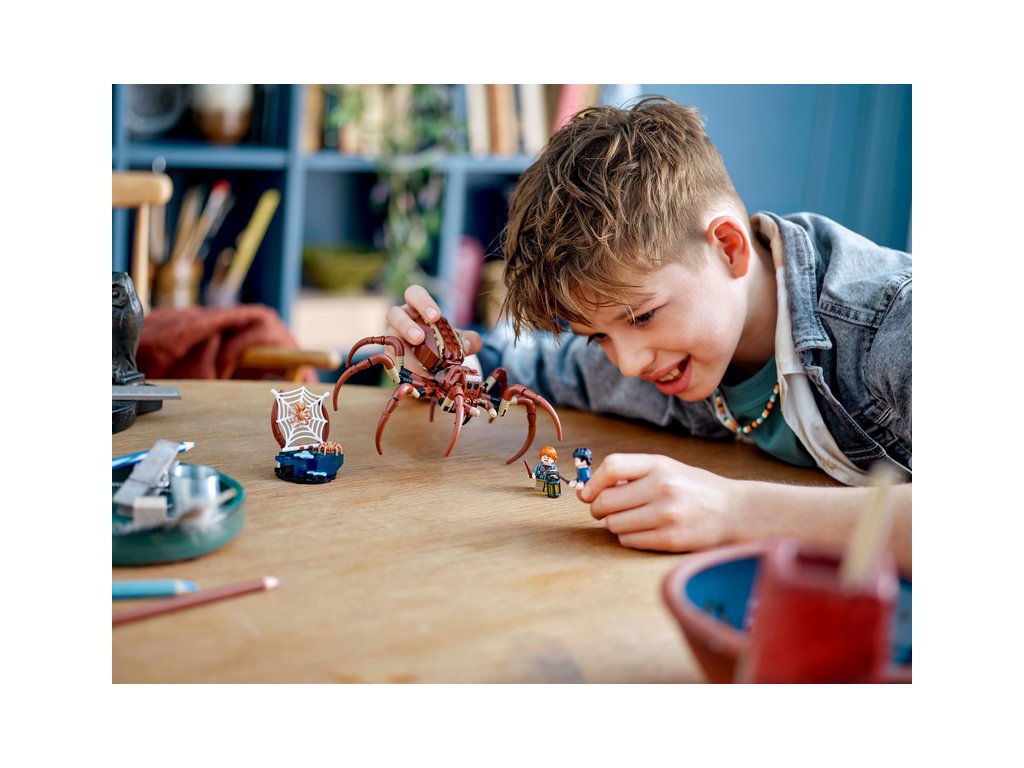 Malí kouzelníci, čarodějnice a mudlové se se stavebnicí s Aragogem z řady LEGO® Harry Potter™ vydají na kouzelná dobrodružství v Zapovězeném lese. Sada představuje magický dárek.