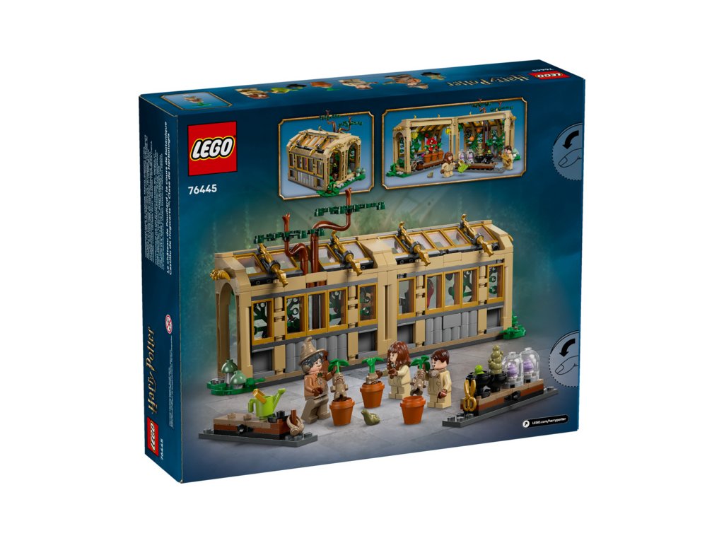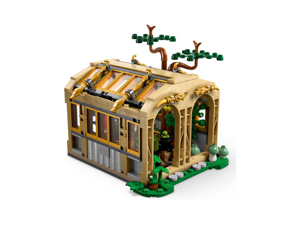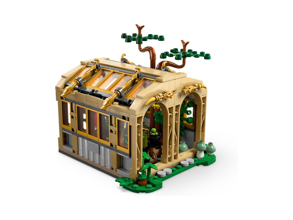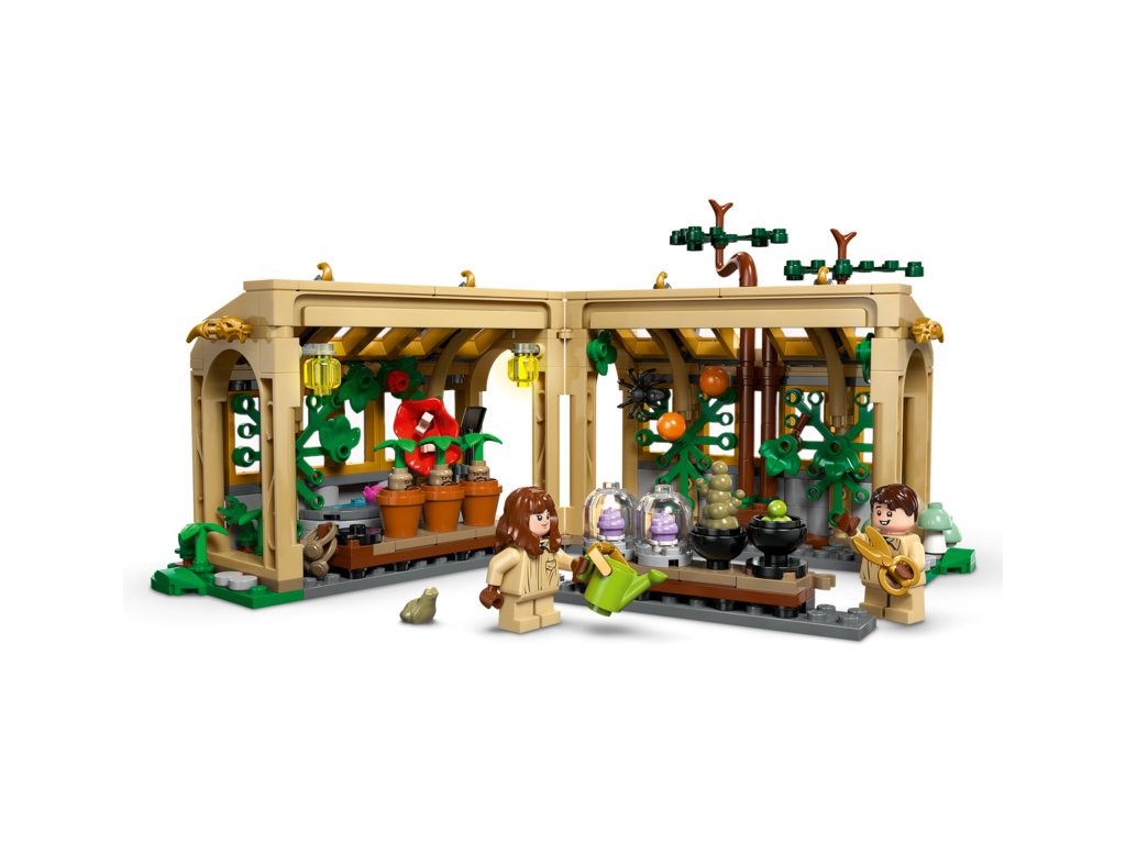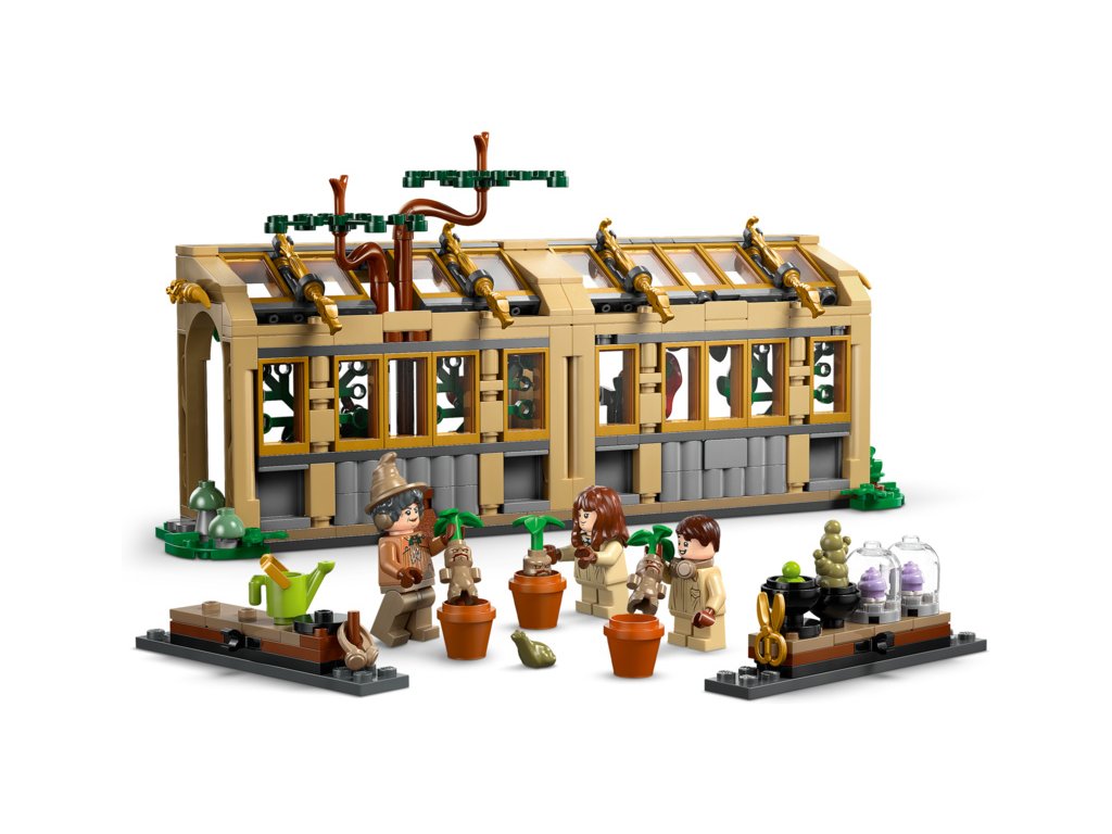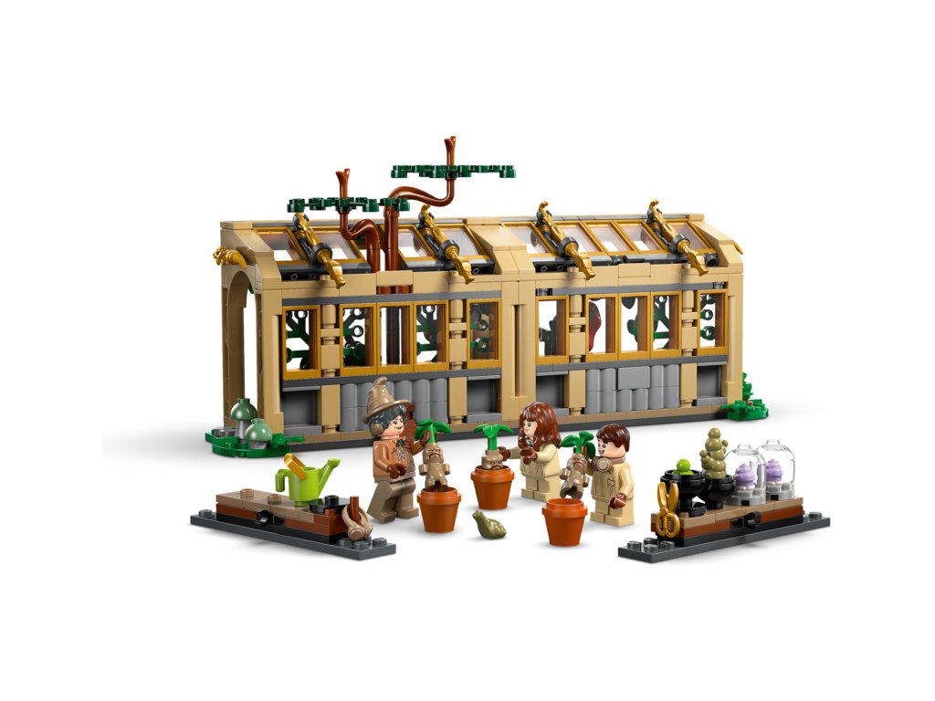 - Stavebnice Bradavic – Sestavitelný skleník lze otevřít pro snadný přístup dovnitř a obsahuje 2 odnímatelné stoly pokryté kouzelnými rostlinami, strom vykukující z „rozbitého“ okna a zahradnické doplňky