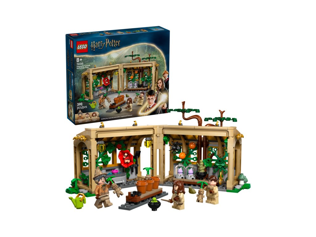 Připomeňte si hodiny bylinkářství na Bradavickém hradě s touto stavebnicí LEGO® Harry Potter™ (76445) pro děti. Model poslouží jako kouzelný narozeninový dárek pro holky, kluky a fanoušky od 8 let a obsahuje sestavitelný skleník/učebnu, kterou lze otevřít pro snadné hraní, a 2 odnímatelné stoly. Ve skleníku najdete řadu kouzelných rostlin, včetně 3 mandragor LEGO Harry Potter vytvořených speciálně pro tuto stavebnici, které můžou minifigurky vytáhnout z květináčů a držet v rukou. K dispozici je také řada zahradnických doplňků pro péči o rostliny.