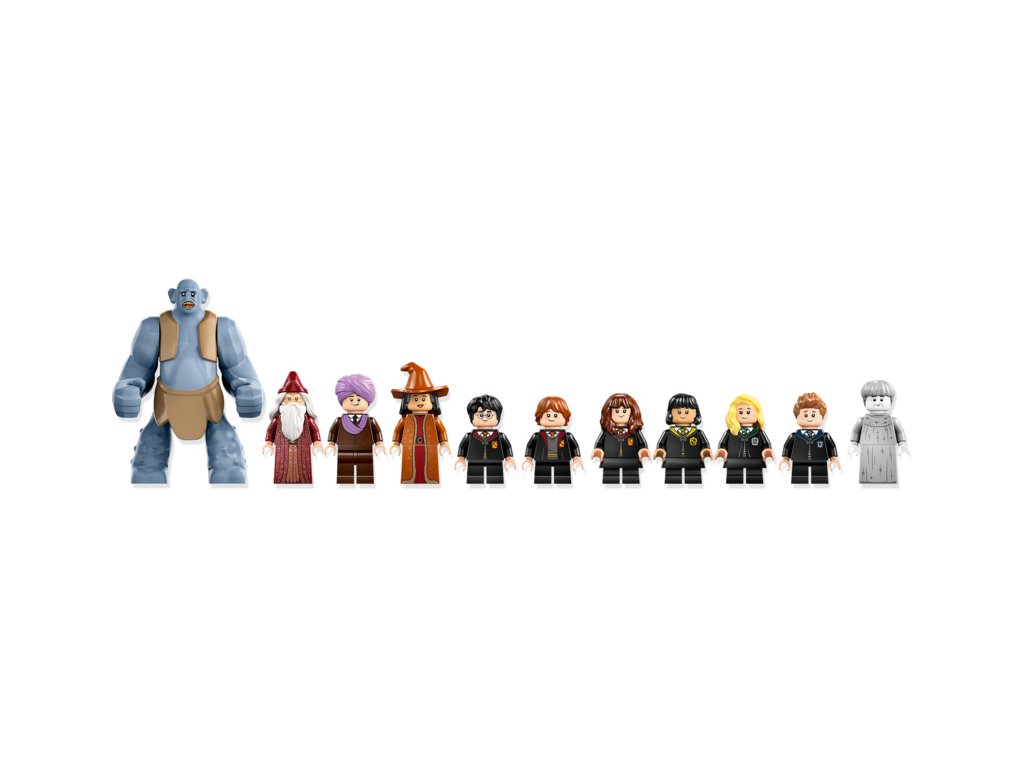 - 11 minifigurek – Harry Potter™, Ron Weasley™, Hermiona Grangerová, Albus Brumbál, profesor Quirrell, Leanna, Dafné Greengrassová, Terry Boot, profesorka Vectorová, Tlustý mnich a horský troll