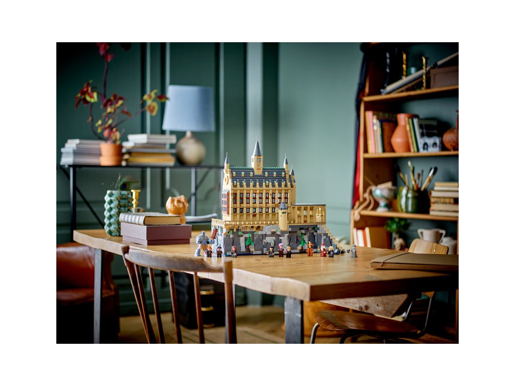 - Sběratelská stavebnice LEGO® Harry Potter™ – Tato stavebnice Velké síně je hlavním modelem řady modulárních stavebnic (prodávají se samostatně), jejichž spojením vytvoříte ten největší Bradavický hrad z kostek LEGO vůbec