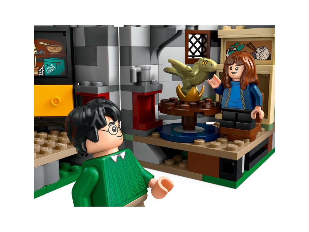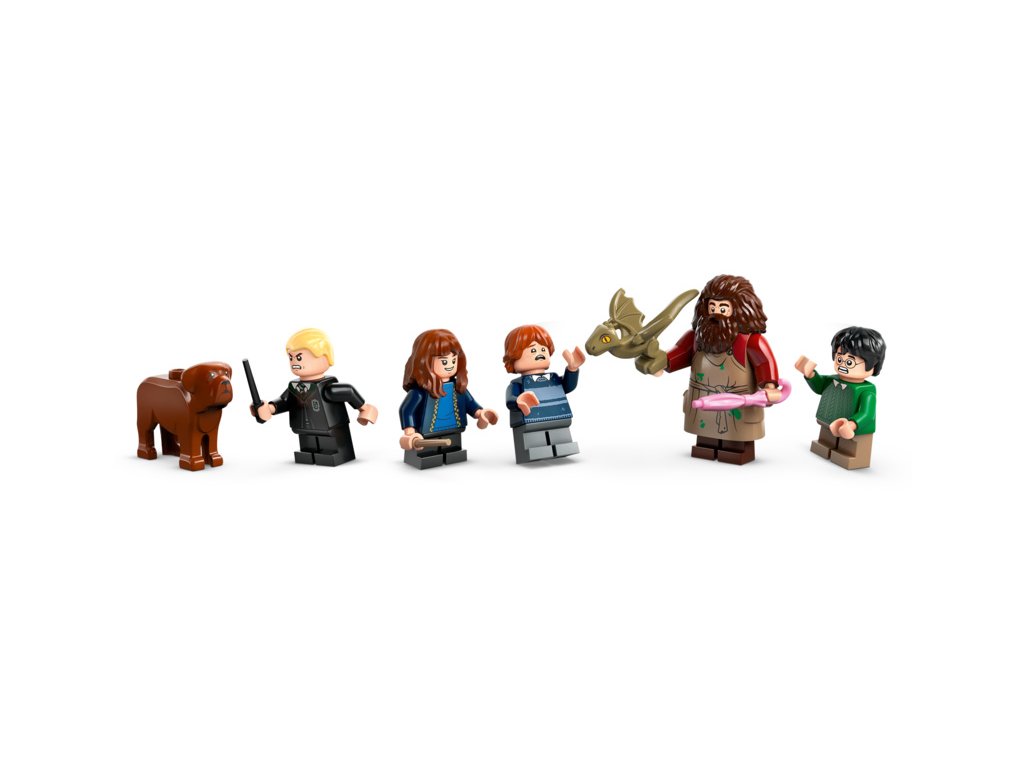 Součástí této stavebnice slavného místa ze světa Harryho Pottera je také 5 minifigurek LEGO – Harry Potter, Hermiona Grangerová, Ron Weasley, Draco Malfoy™ a Rubeus Hagrid – a také figurka Norberta a Tesáka.