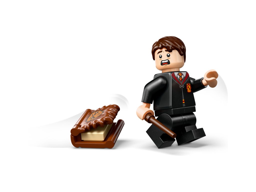 - Postava ze světa Harryho Pottera – Vystavte si model knihy s minifigurkou LEGO® Nevilla Longbottoma, která v ruce drží Obludné obludárium