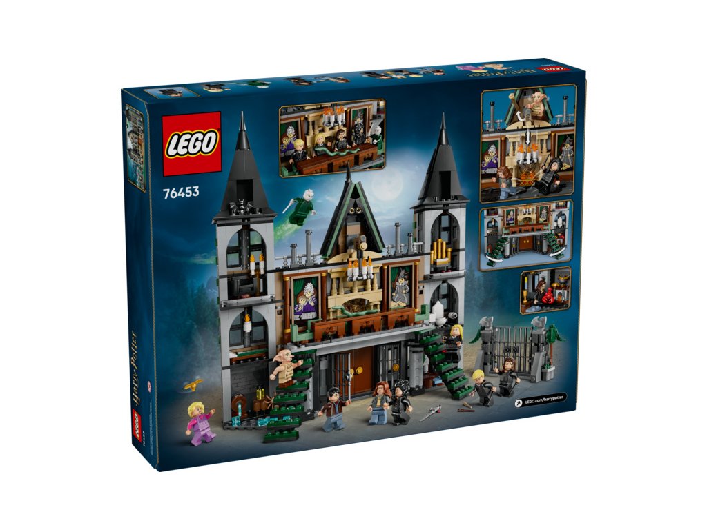 - Rozměry – Stavebnice se skládá z 1601 dílků a model Sídla rodu Malfoyů měří přes 31 cm na výšku, 30 cm na šířku a 17 cm do hloubky