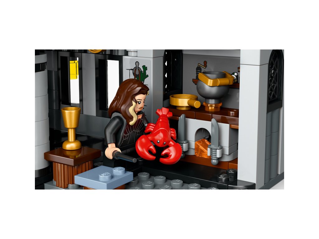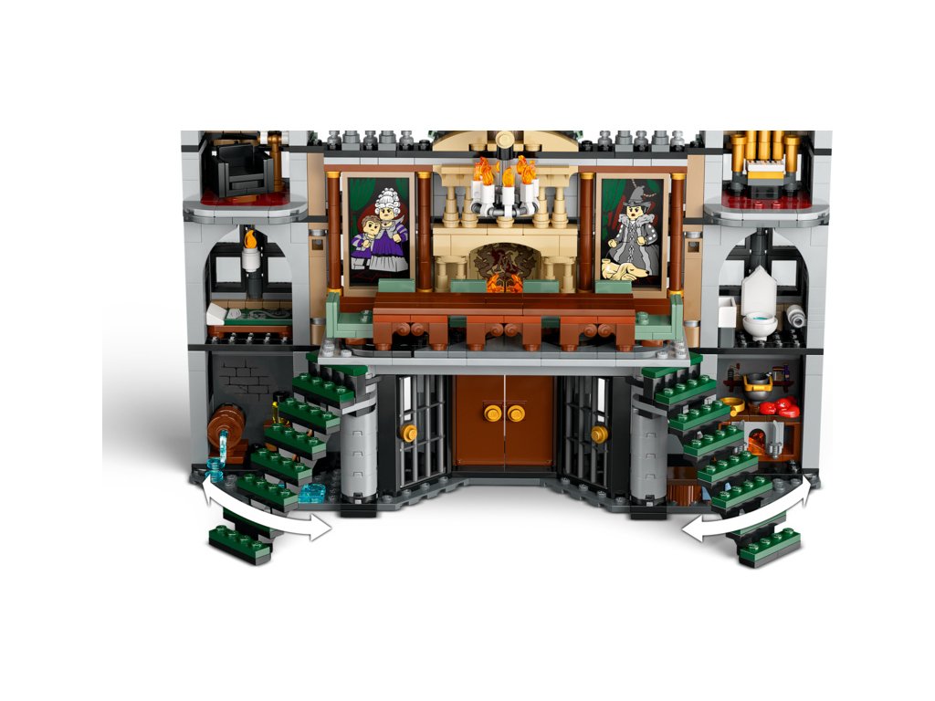 - Kouzelná hračka pro fantastická dobrodružství – Mezi hravé detaily patří funkce padajícího lustru, ikonický dlouhý stůl v přijímacím salónu, cela na uvěznění Harryho Pottera a 2 schodiště