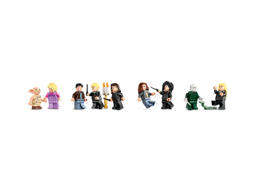 - 10 postav – Minifigurka Harryho Pottera, Narcisy Malfoyové, Hermiony Grangerové, Bellatrix Lestrangeové, Draca Malfoye, Luciuse Malfoye, Lenky Láskorádové, lorda Voldemorta a Dobbyho a figurka Nagini