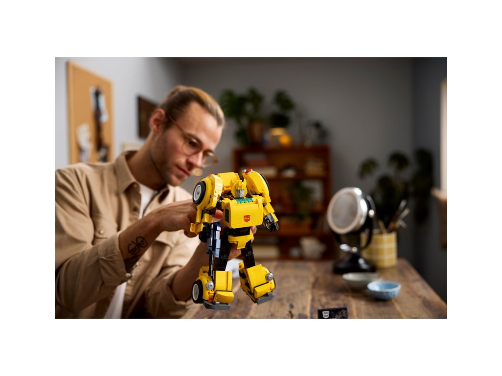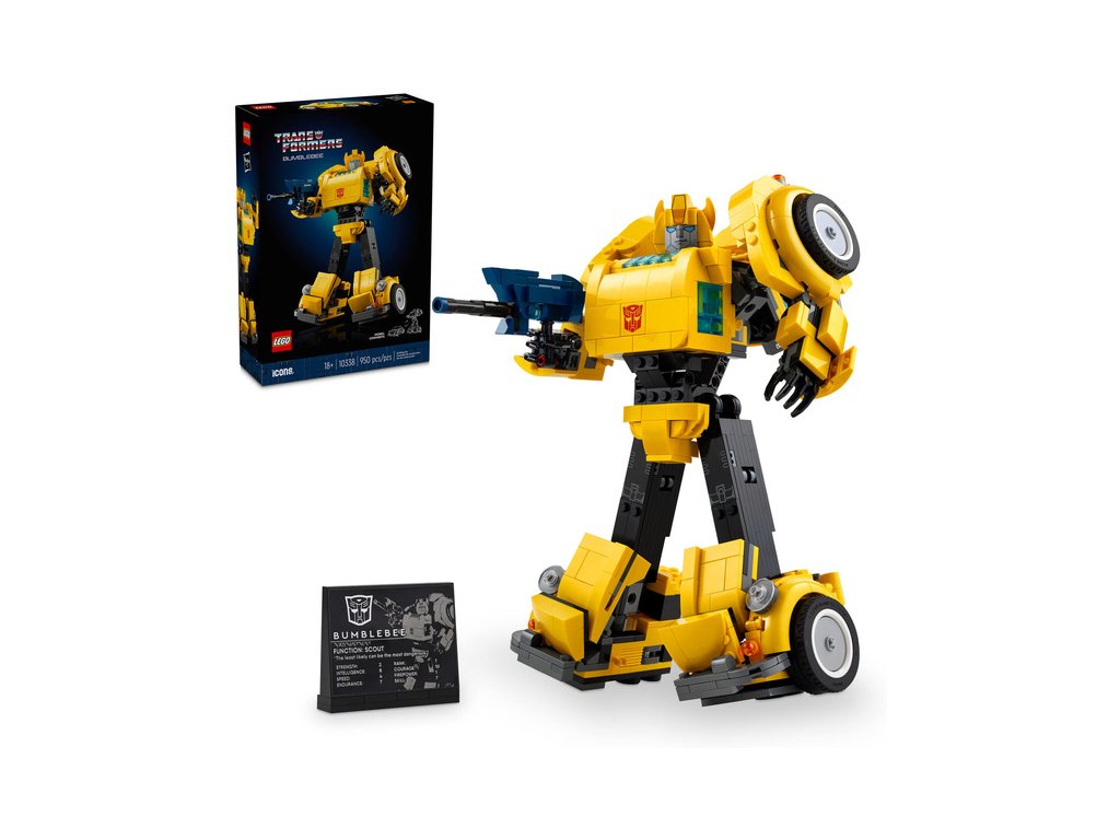 - Akční figurka robota z Transformers pro dospělé – Sběratelský stavitelský projekt LEGO® Icons Transformers Bumblebee pro milovníky sci-fi filmů