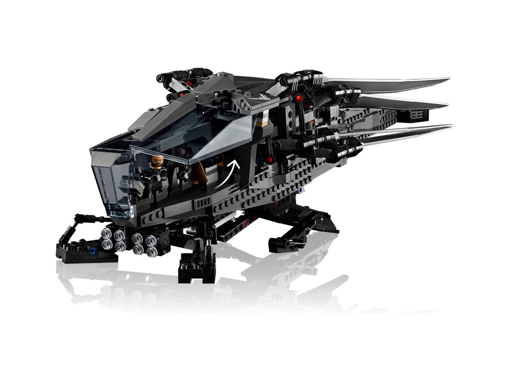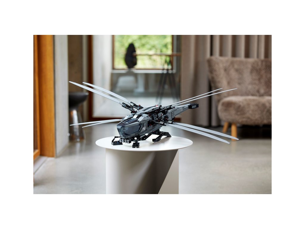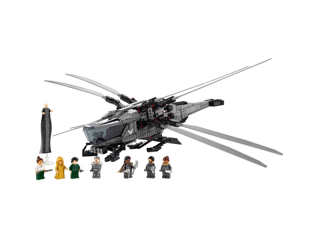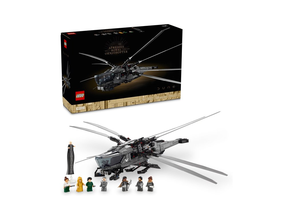 Součástí této prémiové stavebnice je replika ornitoptéry s vyklápěcími mávajícími křídly, zatahovacím podvozkem a otevíracím kokpitem. Nechybí ani 8 slavných postav z filmu: Paul Atreides, lady Jessica, Gurney Halleck, Chani, Leto Atreides, Liet Kynes, Duncan Idaho a baron Harkonnen ve své dlouhé róbě.