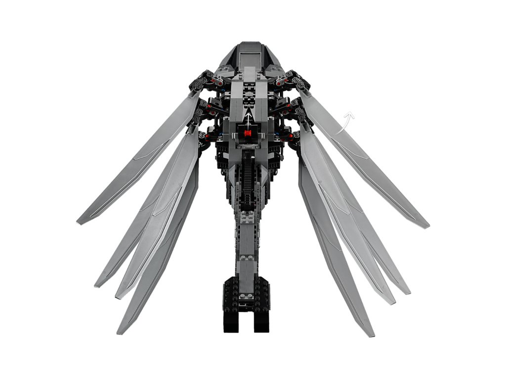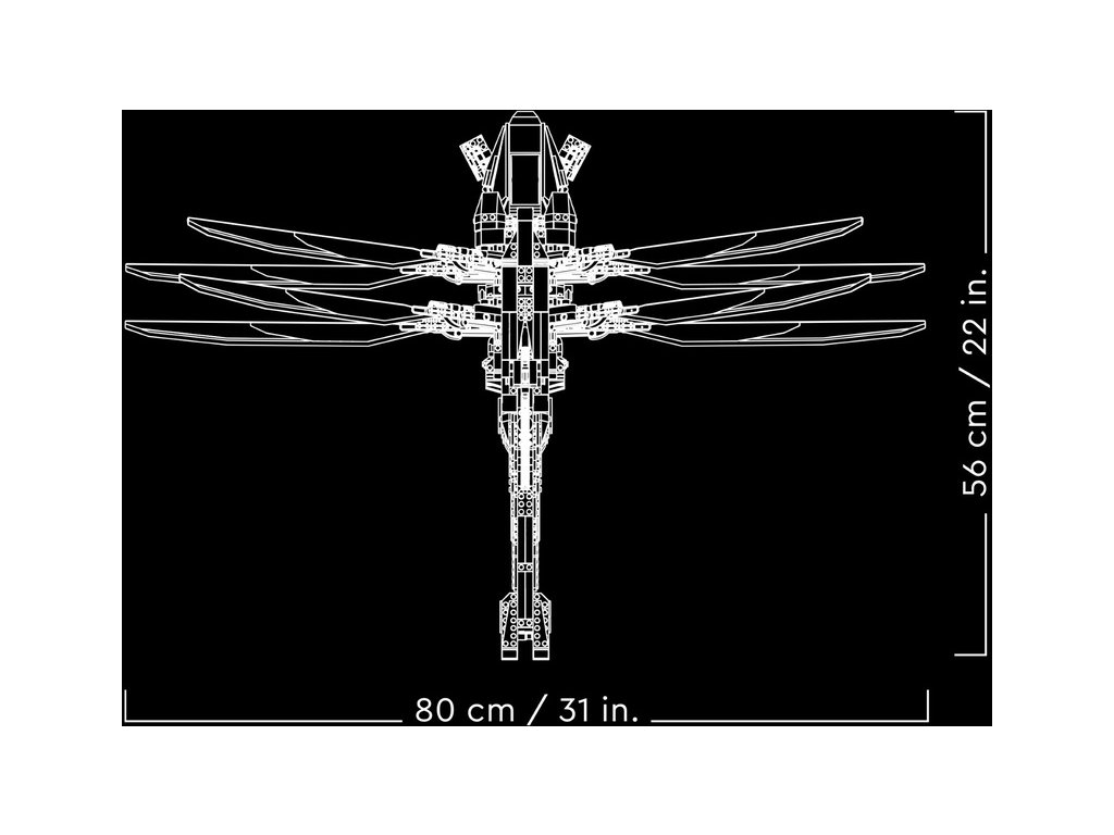 - Rozměry – Model se skládá z 1 369 dílků a s rozloženými křídly měří přes 23 cm na výšku, 57 cm na délku a 79 cm na šířku