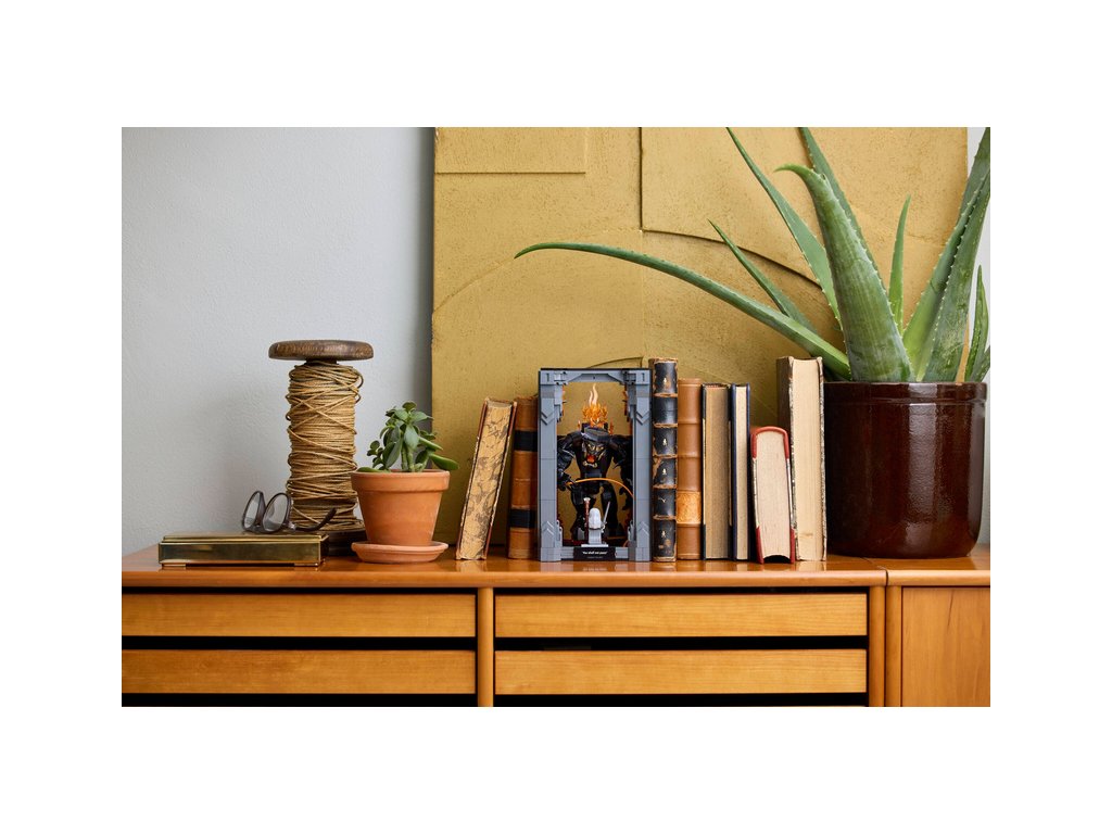 - Stavebnice knižní zarážky s filmovým motivem – Postavte si kousek Středozemě se stavebnicí LEGO® Icons Knižní zarážka: Pán prstenů – Balrog™ pro dospělé