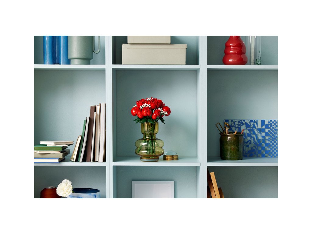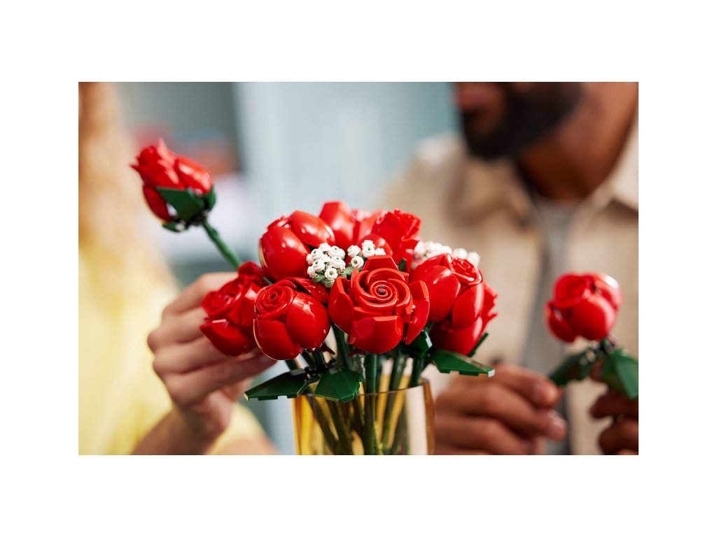 - Sestavitelná dekorační kytice – Odpočiňte si při stavění modelu Kytice růží z řady LEGO® Icons pro dospělé o samotě či s přáteli a rodinou