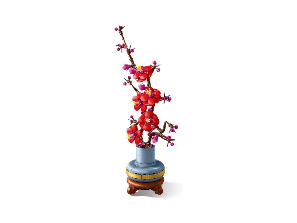 - Kreativní stavění pro milovníky květin – Tato stavebnice obsahuje vše, co potřebujete k sestavení květů meruňky japonské a pastelově modrého květináče se zlatým páskem a podstavcem imitujícím dřevo