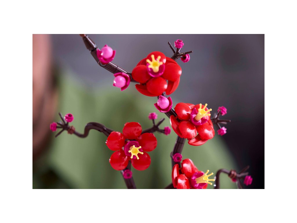 - Propracovaná květinová stavebnice LEGO® pro začínající i zkušené stavitele – Tato replika meruňky japonské z kostek LEGO má elegantní dřevnatý stonek a jasné červené a purpurové květy