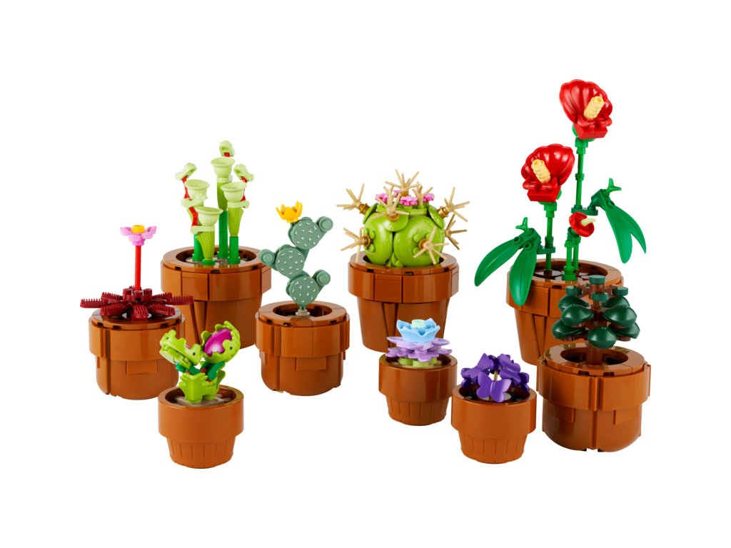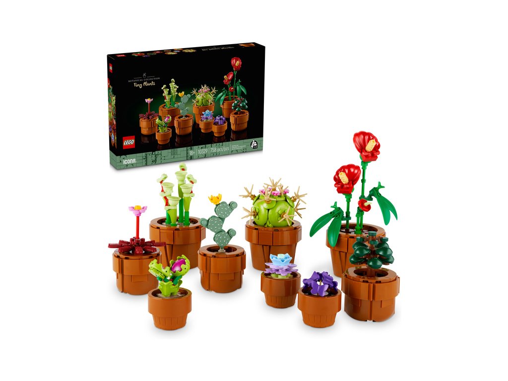 Postavte si elegantní květinovou výstavku snadnou na údržbu. Stavebnice pro dospělé LEGO® Icons (10329) Miniaturní rostliny se skládá z modelů inspirovaných rostlinami ze suché a tropické oblasti a masožravými rostlinami. Každý z modelů má vlastní terakotový květináč z kostek. Vychutnejte si odpočinek při stavění 9 rostlin, které se skvěle hodí na vystavení doma i v kanceláři.