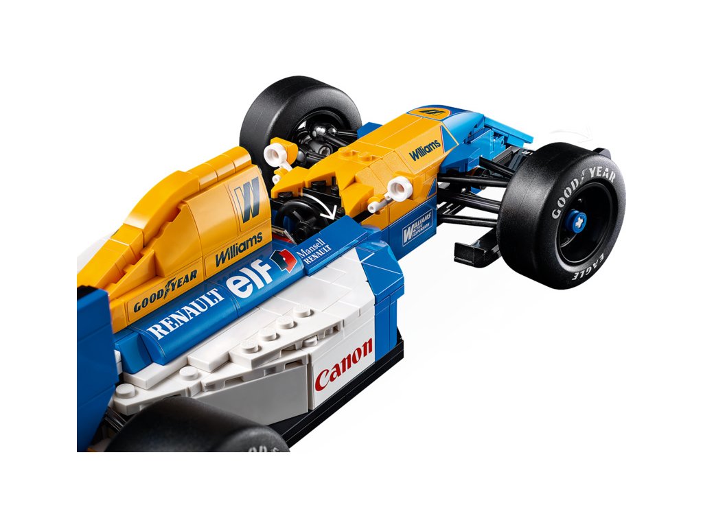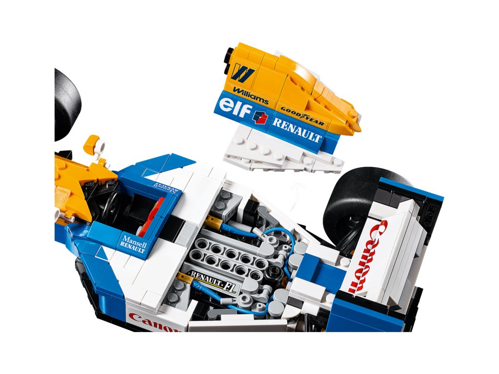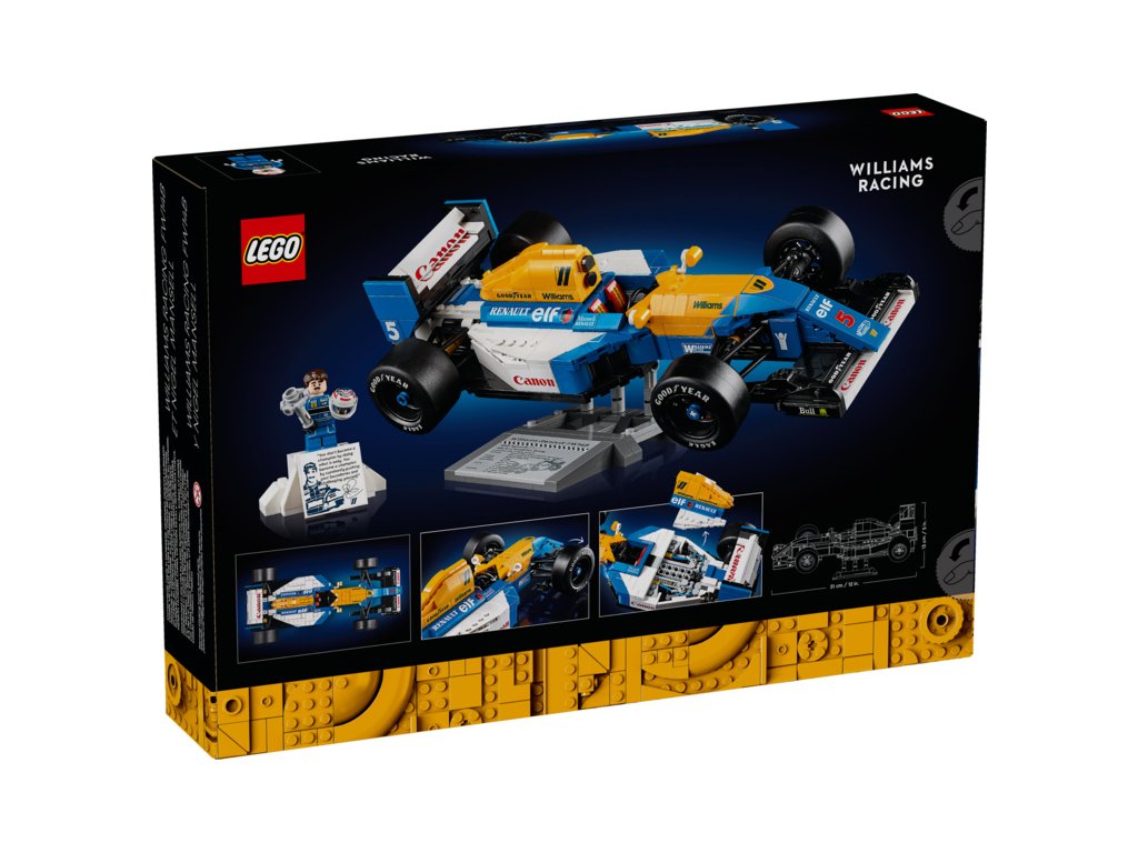 Model LEGO Icons Williams FW14B má funkční řízení, široké zadní hladké pneumatiky s tištěným nápisem Goodyear, detailně zpracovaný motor a podstavec na vystavení s podrobnostmi o vozidle a statistikami. Minifigurka Nigela Mansella má helmu a podstavec ve stylu pódia s fotografií a citátem tohoto legendárního jezdce.