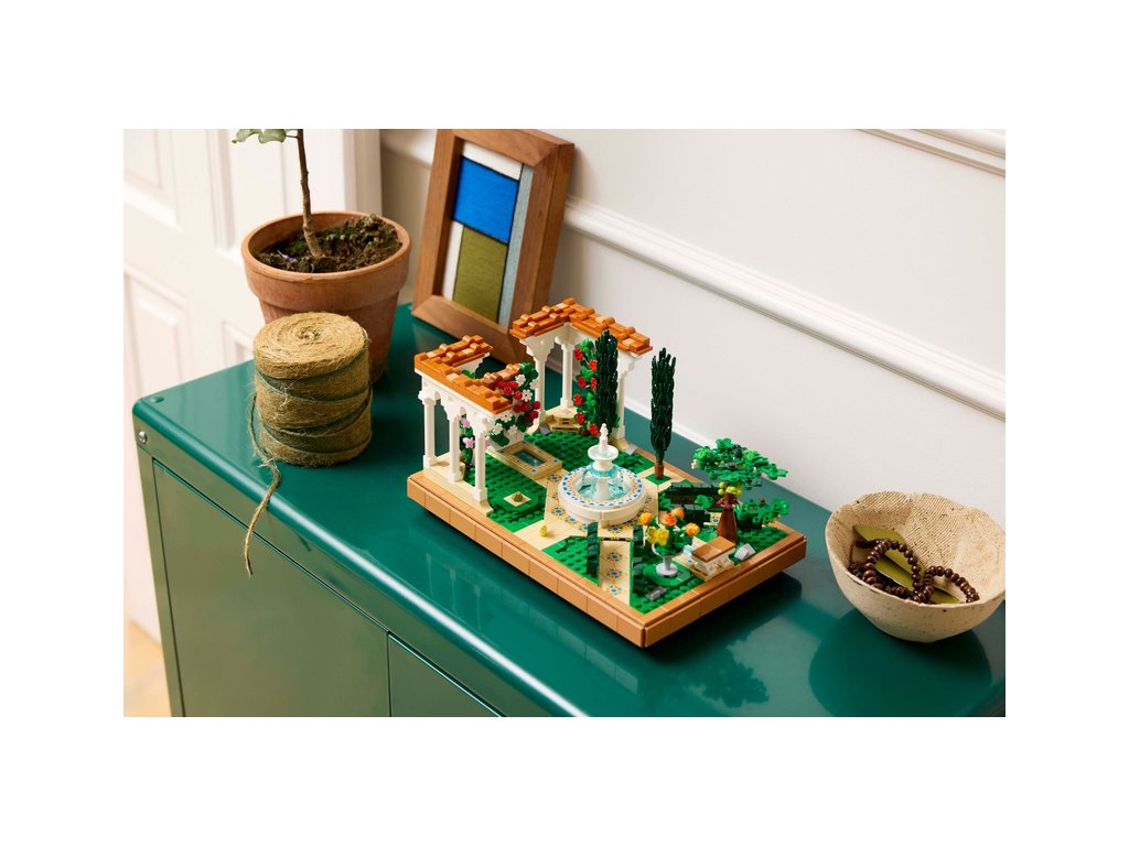 - Ozdobná stavebnice zahrady pro dospělé – Relaxujte při stavění tvůrčího projektu LEGO® Icons Zahrada s fontánou