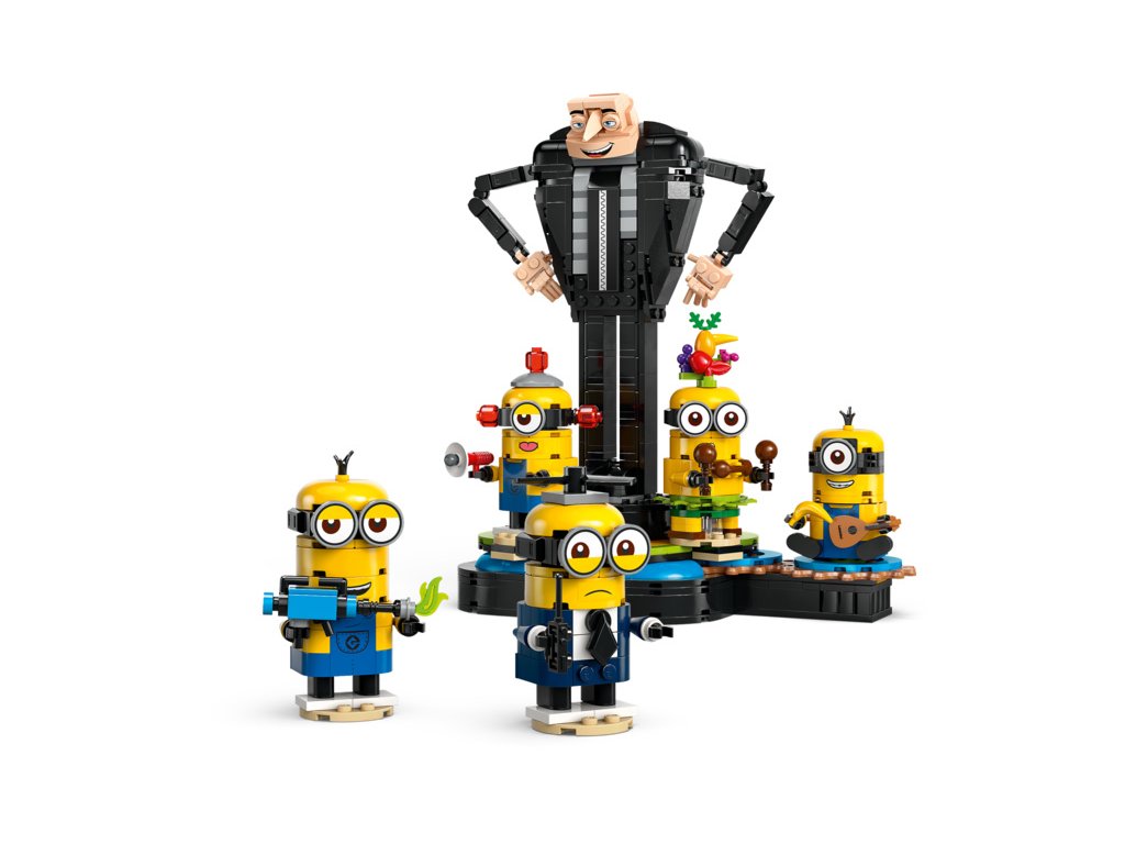 Velká figurka Grua má pohyblivé paže, ruce a prsty, které děti mohou napolohovat do oblíbených póz. Součástí jé také 5 mimoňů: Jerry s rumba koulemi a ovocným kloboukem, tajný agent Dave s vrtulkou na hlavě a vysílačkou, mimoň Beedoo s megafonem, Mel hrající na ukulele a Kevin se zbraní odpalující prdy. Mimoni jsou umístěni na otáčející se plošině. Když děti otočí sedícího mimoně, ostatní začnou tančit kolem svého usmívajícího se šéfa! Každý mimoň dokáže pohybovat rukama a držet doplňky. Hlavy figurek jsou pohyblivé a oči lze vyměnit a vytvořit tak různé výrazy. Děti mohou 4 mimoně sundat z podstavce a objevit další možnosti hraní.