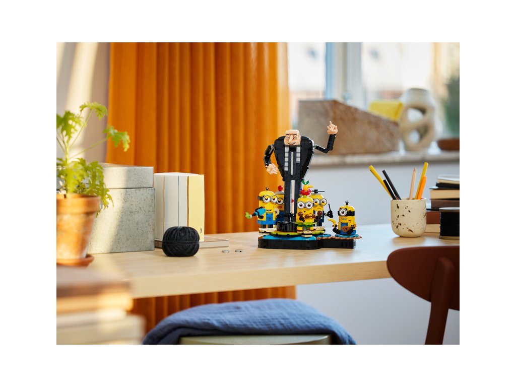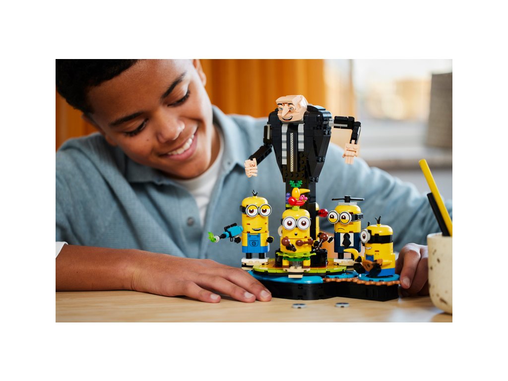 - Figurka Grua a tančící mimoni – Stavebnice LEGO® Já padouch 4 Gru a mimoni z kostek je sestavitelná výstavní hračka pro děti od 9 let, které milují filmy s mimoni