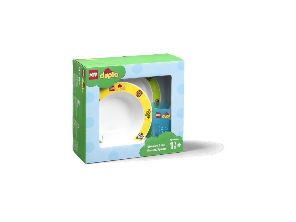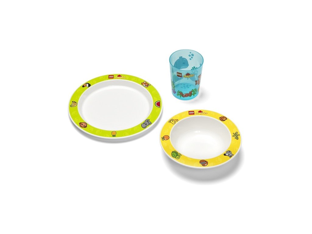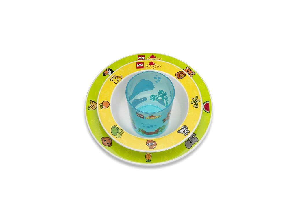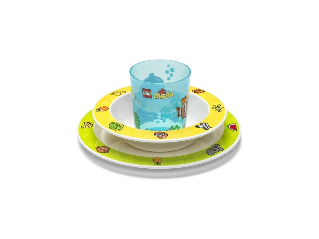 Užijte si společně legraci s touto jasnou a barevnou sadou LEGO DUPLO Jídelní set, která obsahuje hrnek, velký talíř a menší hluboký talíř. Tato sada vyrobená z PP plastu je ozdobená krásnými obrázky oblíbených LEGO DUPLO zvířátek a jídel. Sadu lze bezpečně mýt v myčce na nádobí a používat v mikrovlnce.