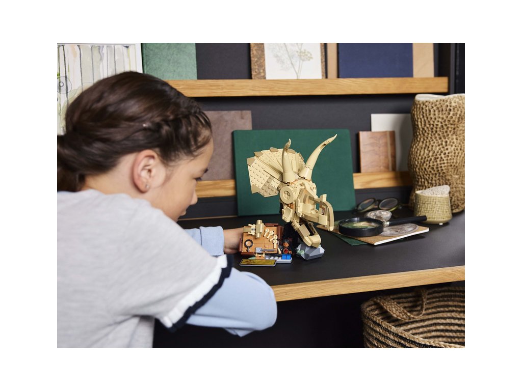 - Dinosauří model pro malé stavitele – Na děti od 9 let se stavebnicí Dinosauří fosilie: Lebka triceratopse čeká spousta zábavy. Tento náročnější model potěší každého fanouška a bude se skvěle vyjímat na výstavce