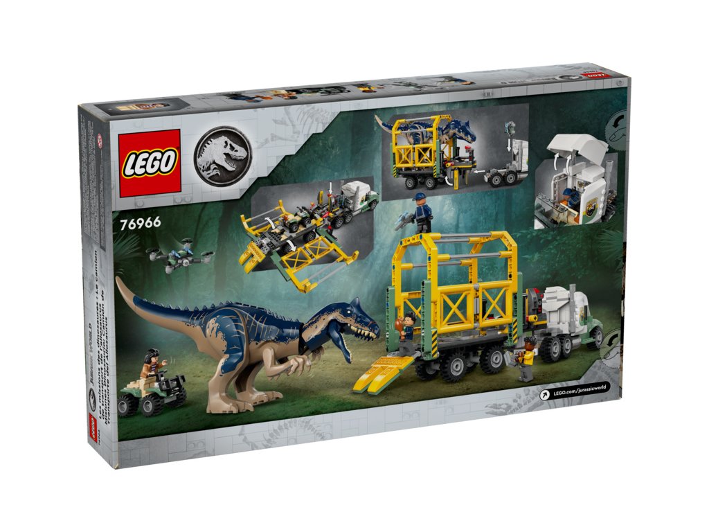 Fanoušci od 8 let se se stavebnicí Dinosauří mise: Přeprava allosaura (76966) vydají na nová nečekaná dobrodružství se zvířátky. Tato sada z řady LEGO® Jurassic World malým stavitelům přináší spoustu herních možností a poslouží jako skvělý dárek pro děti. Součástí je odlévaná figurka allosaura s pohyblivýma nohama, hlavou a otevírací tlamou a minifigurky Daria, Kenjiho, Yaz a strážce, se kterými se děti mohou těšit na nekonečná akční dobrodružství. Nechybí ani tahač s otevírací střechou a kapotou, kabinou pro 3 minifigurky s postelí, klecový přívěs s předními podpěrami a otevírací zadní rampou, klec, kterou lze otevřít zatažením za páku a spousta inspirativních doplňků.