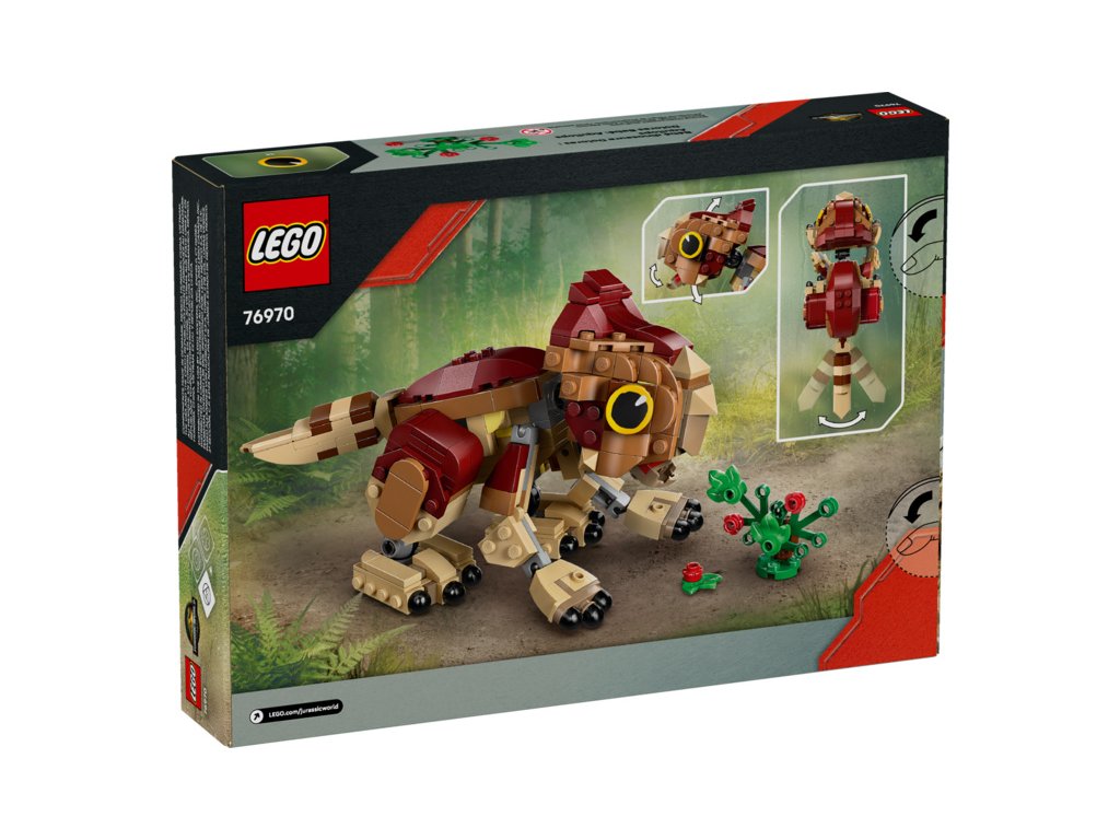 Děti a fanoušci od 7 let rozšíří svou sbírku dinosaurů a vydají se na dobrodružství se zábavnou stavebnicí LEGO® Jurassic World (76970) Dinosauří mládě Dolores: Aquilops. Tato výstavní stavebnice obsahuje figurku malého aquilopse z kostek a sestavitelnou rostlinu s květinami. Model mláděte Dolores má pohyblivou hlavu, ruce a nohy, díky kterým ji můžete libovolně napolohovat, a navíc pohyblivý ocas a otevírací čelist, kterou dává najevo potěšení, když si pochutná na rostlině. Jakmile hraní skončí, můžete si tento roztomilý model dinosaura umístit na polici nebo na stůl a pochlubit se jím.