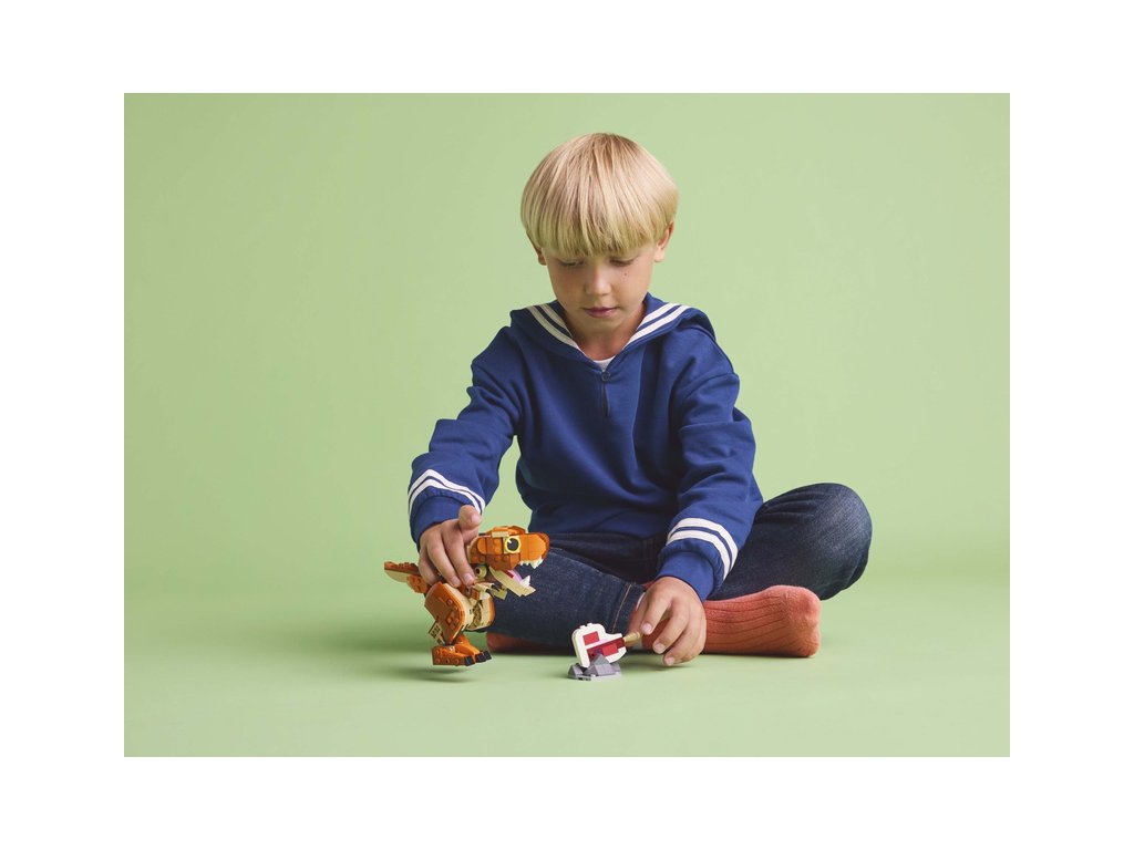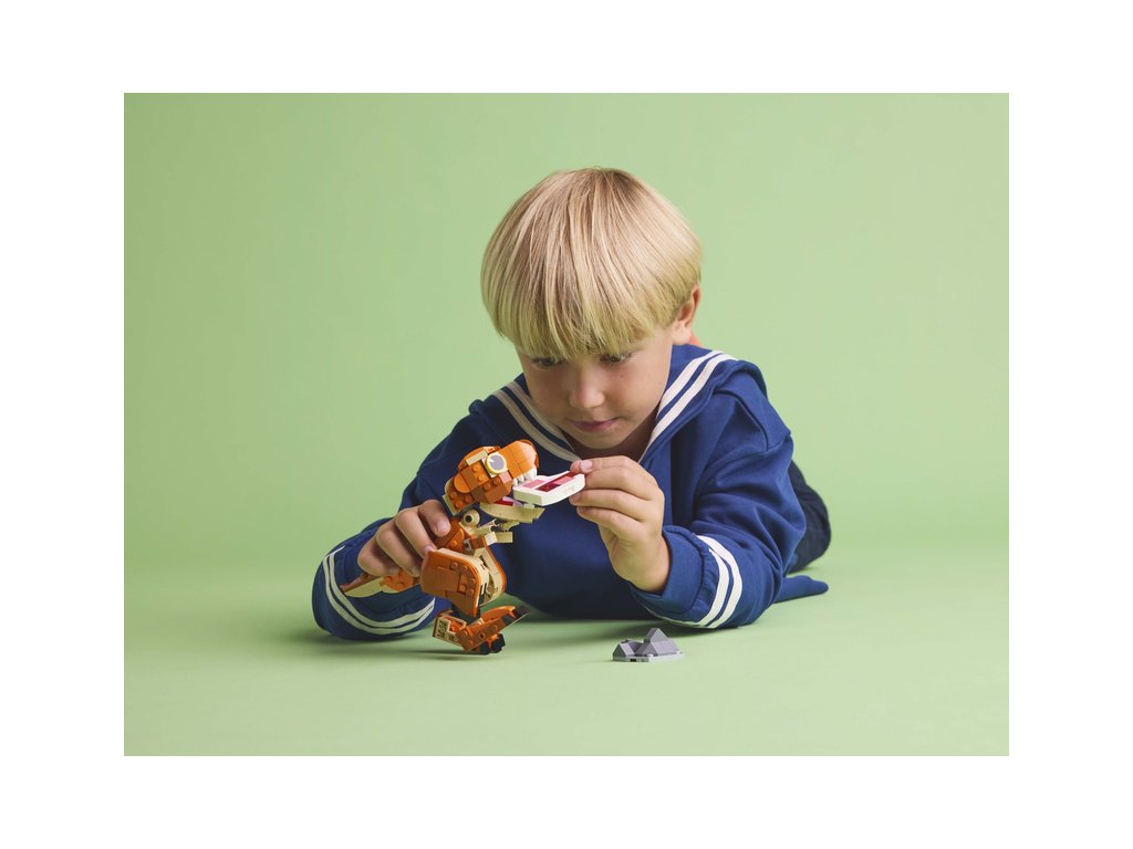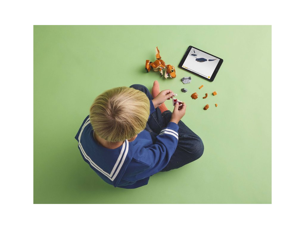 - Pohyblivý dinosaurus z kostek LEGO® – Model inspirovaný seriálem Jurský svět: Teorie chaosu má otevírací čelisti, pohyblivou hlavu a ocas a kloubové paže a nohy. Stavebnici lze různě polohovat při hraní nebo na výstavku