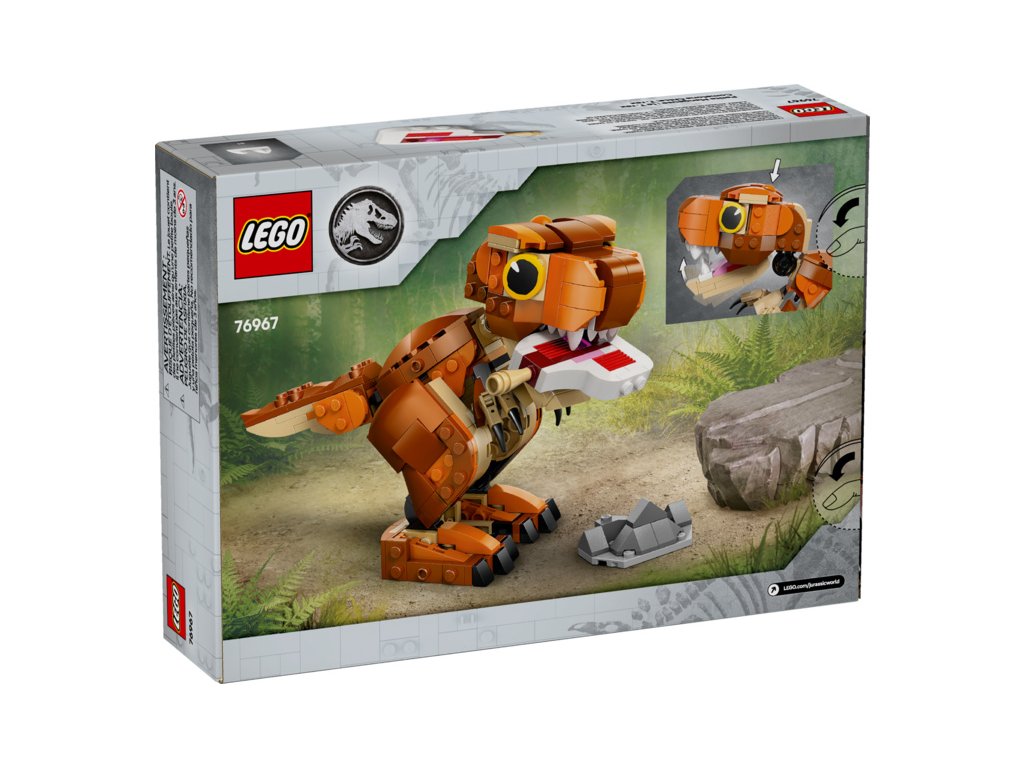 Se stavebnicí LEGO® Jurassic World (76967)) Malá Žravka: T-rex si děti od 7 let užijí hodiny napínavých dobrodružství, hraní a péče o dinosaura. Stavebnice nabízí spoustu možností hraní i vystavení. Malí krotitelé dinosaurů si poskládají model LEGO dinosaura a pak se pustí do objevování pravěkého světa s Malou Žravkou ze seriálu Jurský svět: Křídový kemp. Stavebnice inspirovaná seriálem Jurský svět: Teorie chaosu obsahuje figurku T-rexe z kostek s interaktivní žvýkací čelistí a pohyblivým ocasem a končetinami, které umožňují vytvářet různé pózy. Až si děti dohrají, model dinosaura si vystaví na poličce nebo třeba na stole.