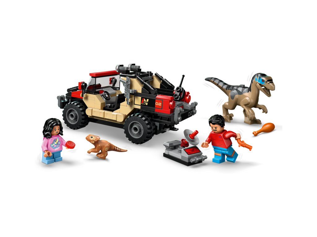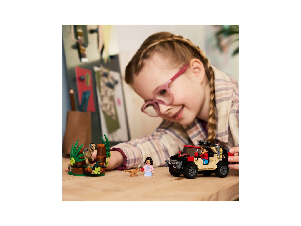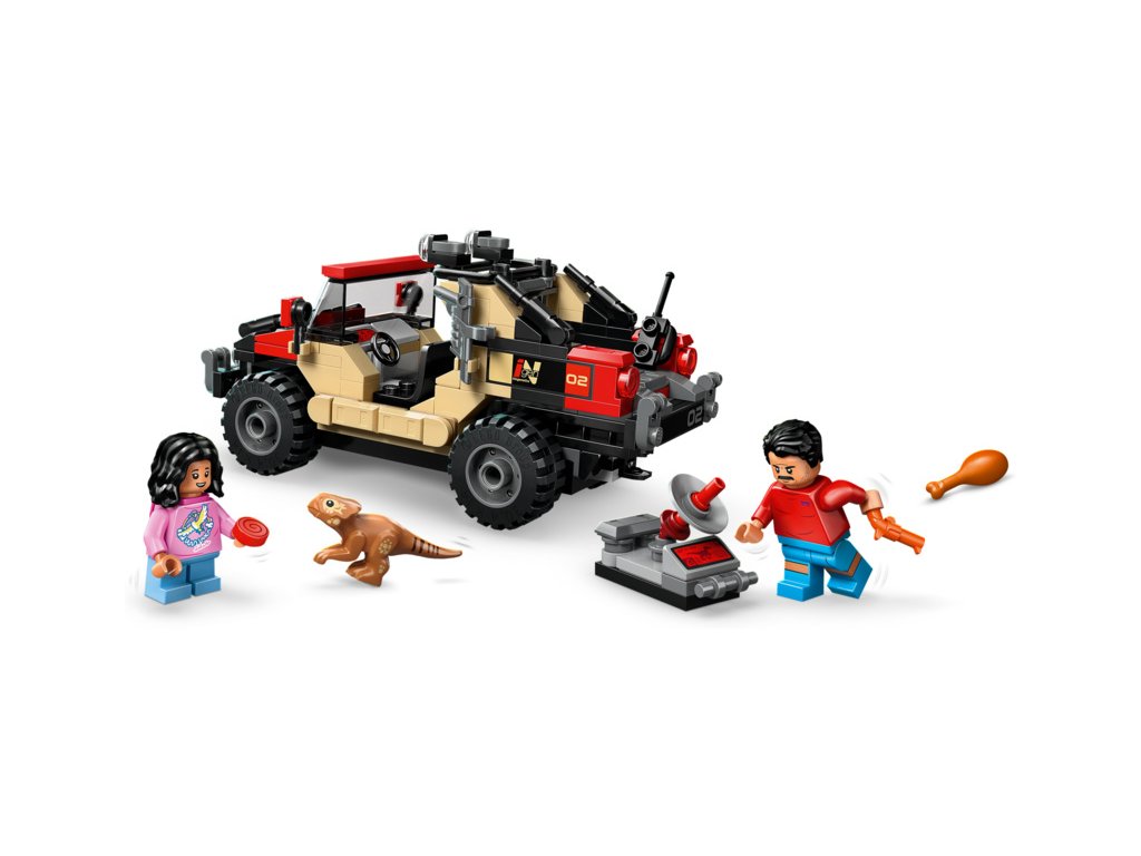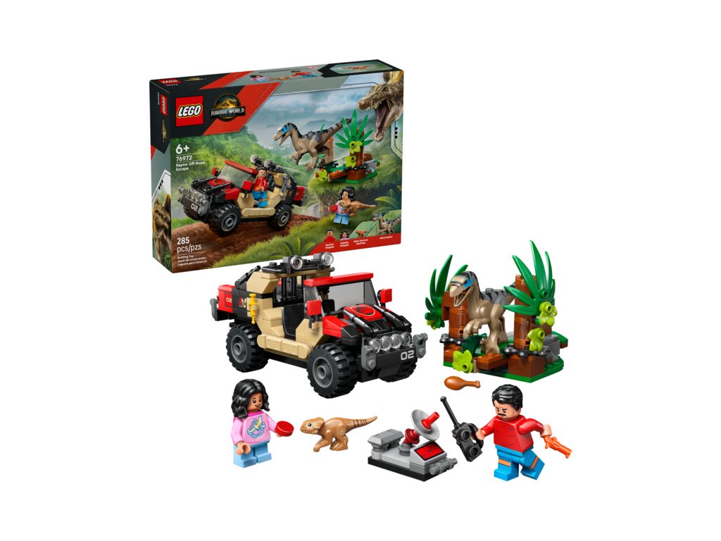 Stavebnice LEGO® Jurassic World (76972) Únik před raptorem v terénním autě je inspirovaná filmem Jurassic World: Rebirth a poslouží jako skvělý dárek pro kluky a holky od 6 let, kteří milují tyto pravěké tvory. Až děti stavebnici poskládají, připomenou si své oblíbené filmové scény nebo vymyslí nové příběhy s minifigurkami Reubena a Isabelly Delgadových, figurkou mláděte dinosaura Dolores a figurkou velociraptora s pohyblivou čelistí. Stavebnice obsahuje terénní auto a sledovací zařízení, keř se efektem „překvapení“, který můžete použít během hry s velociraptorem, a spoustu dalšího.