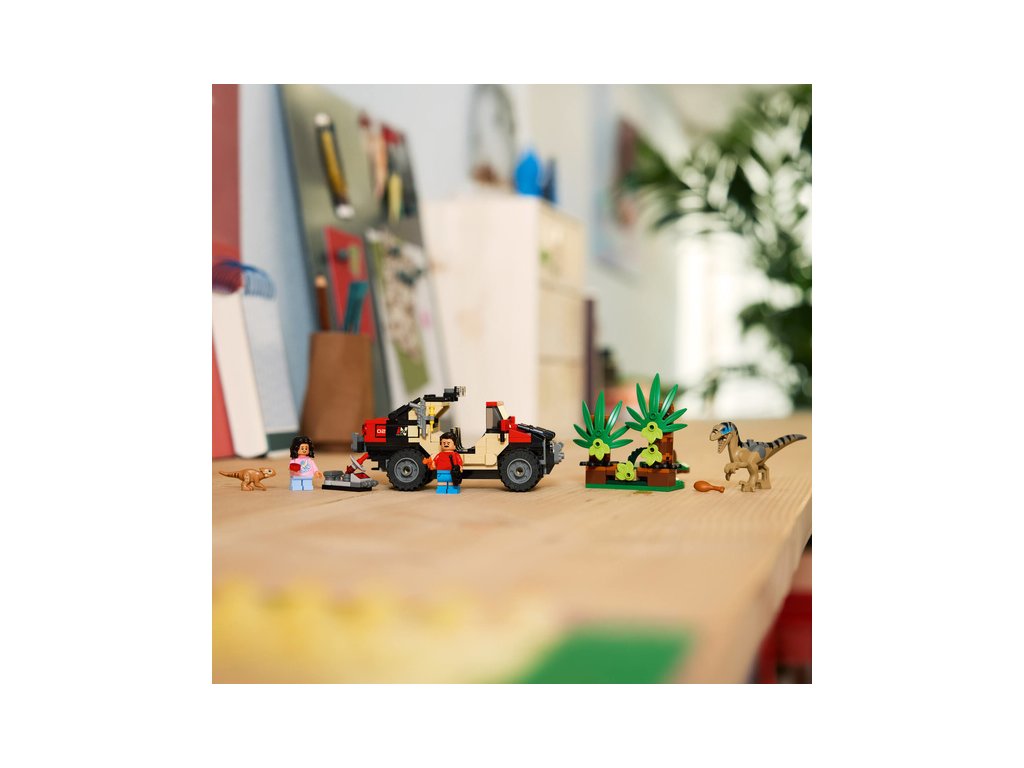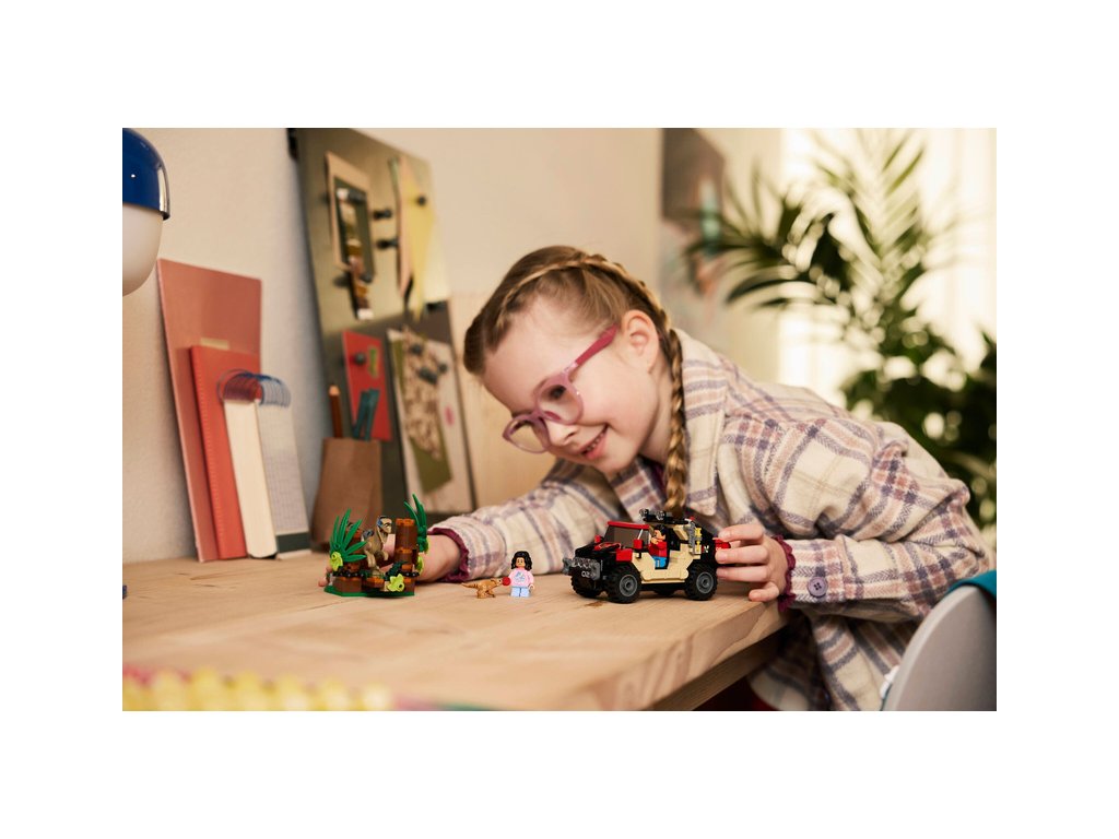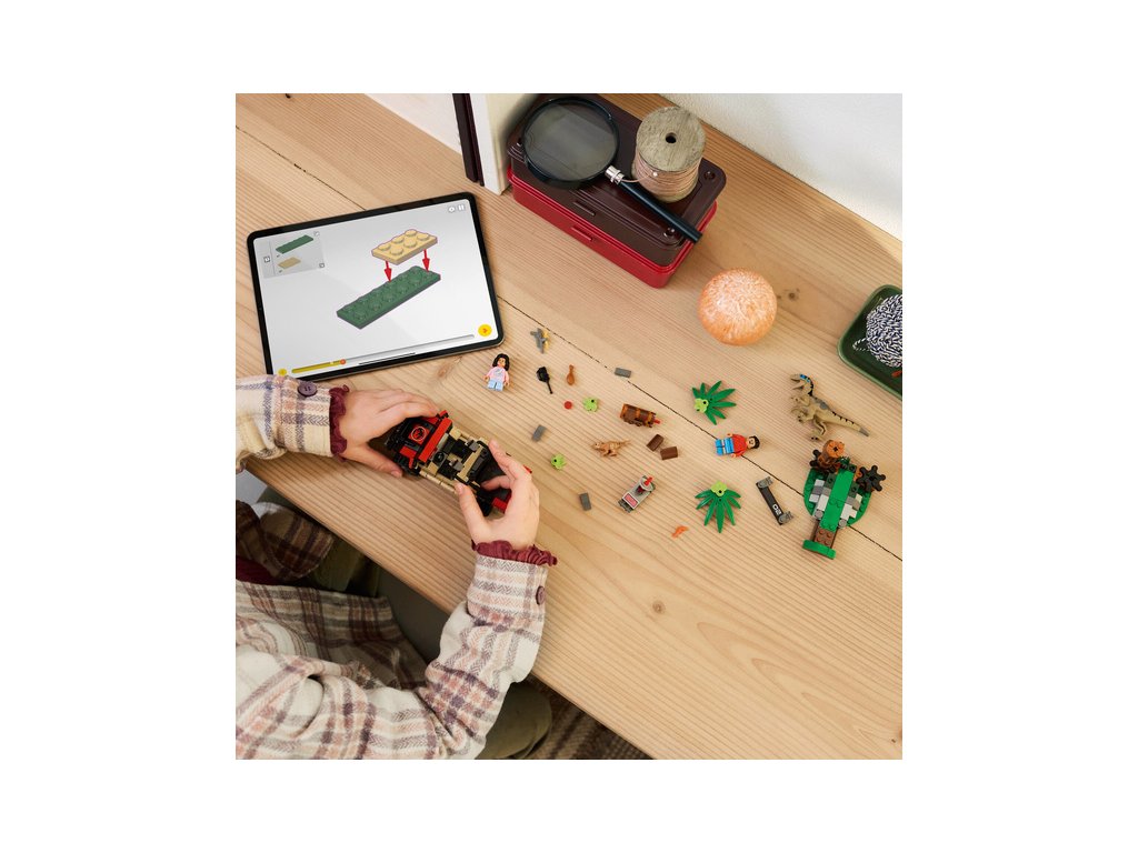 - Kreativní stavebnice – Stavebnice obsahuje tvarované figurky LEGO® dinosaurů, mládě aquilopse a velociraptora, a navíc terénní vozidlo a minifigurku Reubena a Isabelly, které inspirují děti k hraní na lov dinosaurů