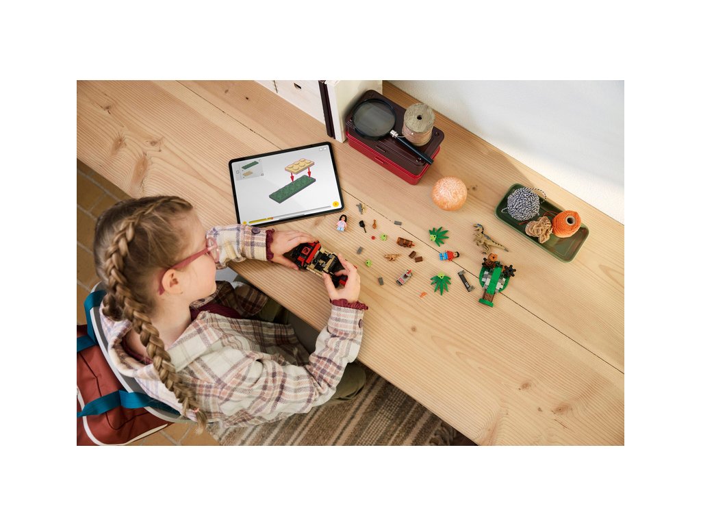 Aplikace LEGO Builder provede malé fanoušky dinosaurů intuitivním stavitelským dobrodružstvím, které jim umožní přibližovat a otáčet modely ve 3D, ukládat stavebnice a sledovat postup stavění. Stavebnice je kompatibilní s dalšími sadami LEGO a LEGO Jurassic World (všechny se prodávají samostatně). Děti i dospělí si zamilují funkci „překvapení“, která dodává hernímu zážitku nový rozměr. Stavebnice se skládá z 285 dílků.