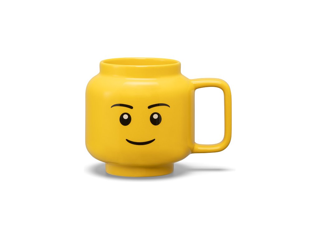 - Keramický hrnek v podobě klasické hlavy minifigurky s potiskem