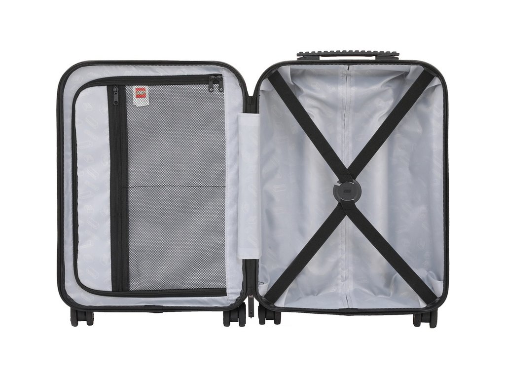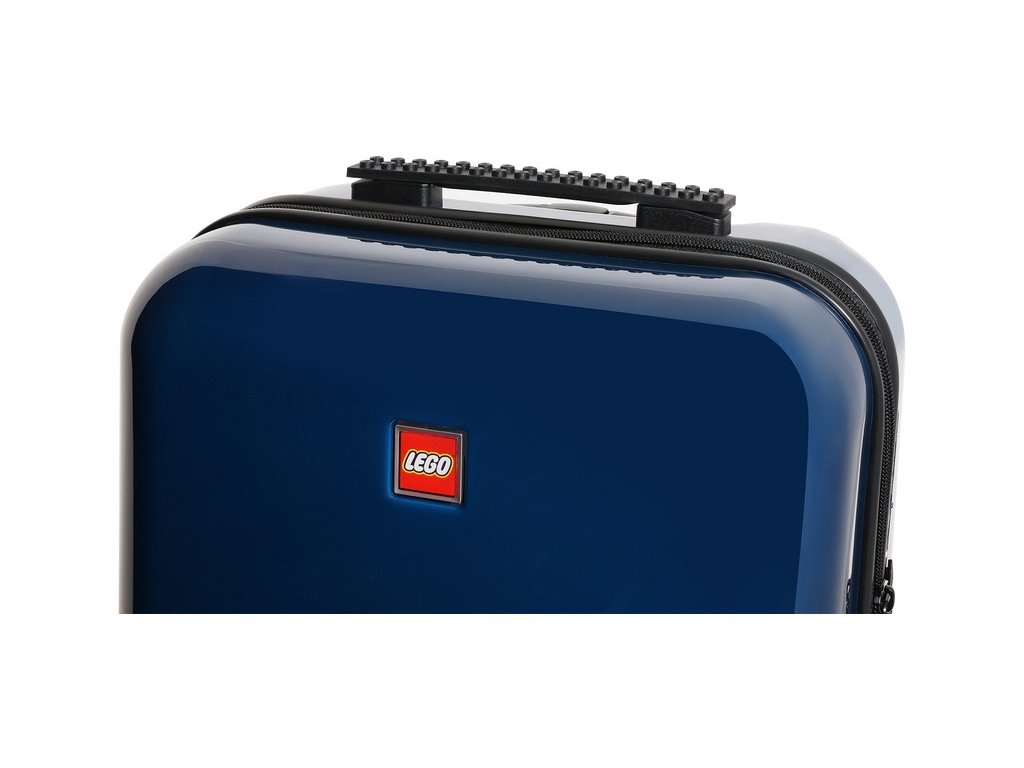 - Ikonický LEGO design s barevnou LEGO kostkou na straně jedné a s logem LEGO v barvě kufru na straně druhé.