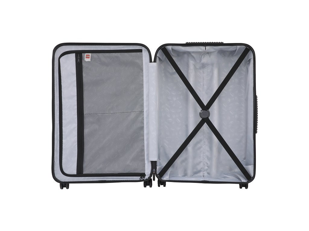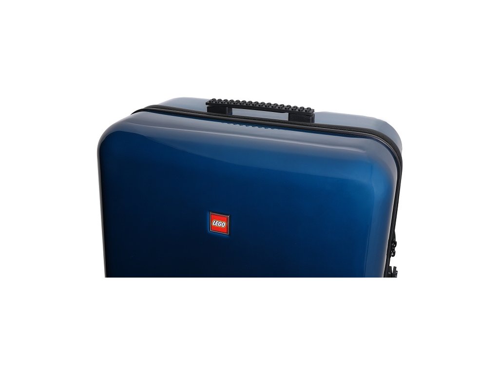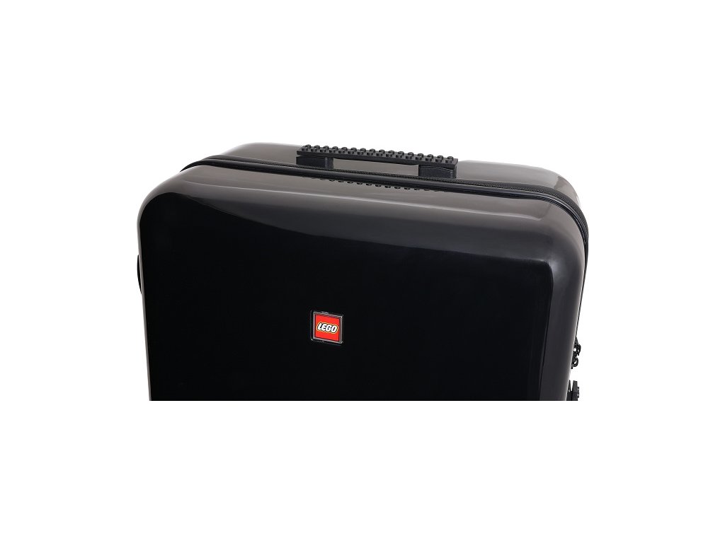 - Ikonický LEGO design s barevnou LEGO kostkou na straně jedné a s logem LEGO v barvě kufru na straně druhé.