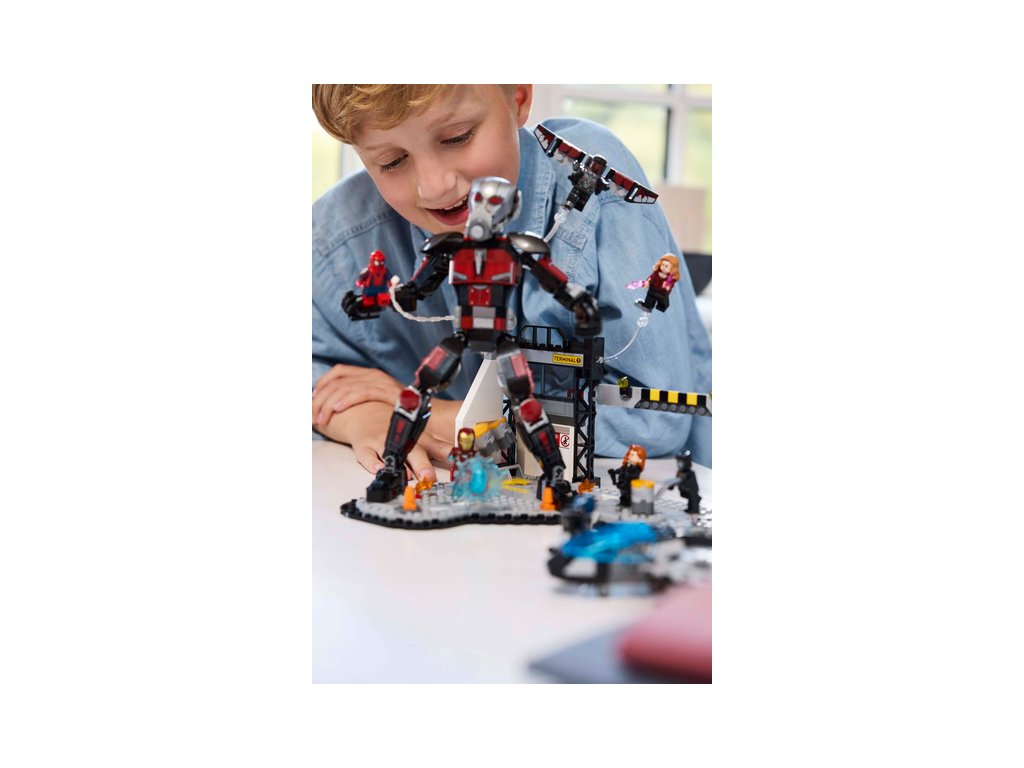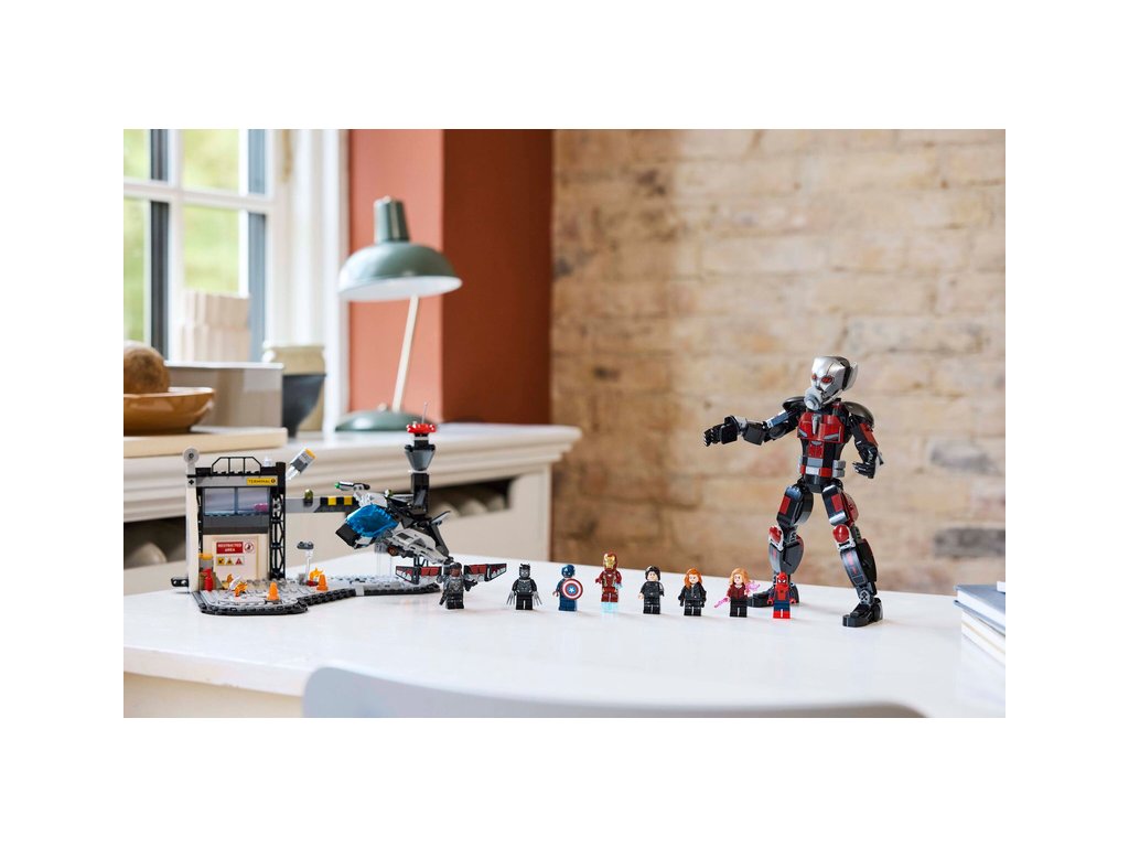 - Figurky LEGO® Marvel – Součástí je velká, plně pohyblivá figurka LEGO Ant-Mana a 8 minifigurek: Kapitán Amerika, Winter Soldier, Wanda, Falcon, Iron Man, Spider-Man, Black Widow a Black Panthera