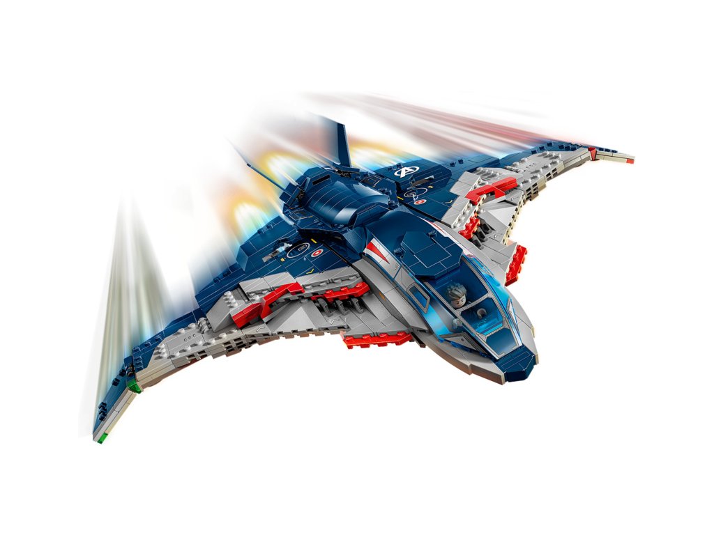 - Quinjet Avengers – Letadlo má otevírací kokpit, 2 vystřelovače vpředu, úložný prostor na zbraně a otevírací zadní dveře, aby děti mohly vjíždět a vyjíždět s motorkou