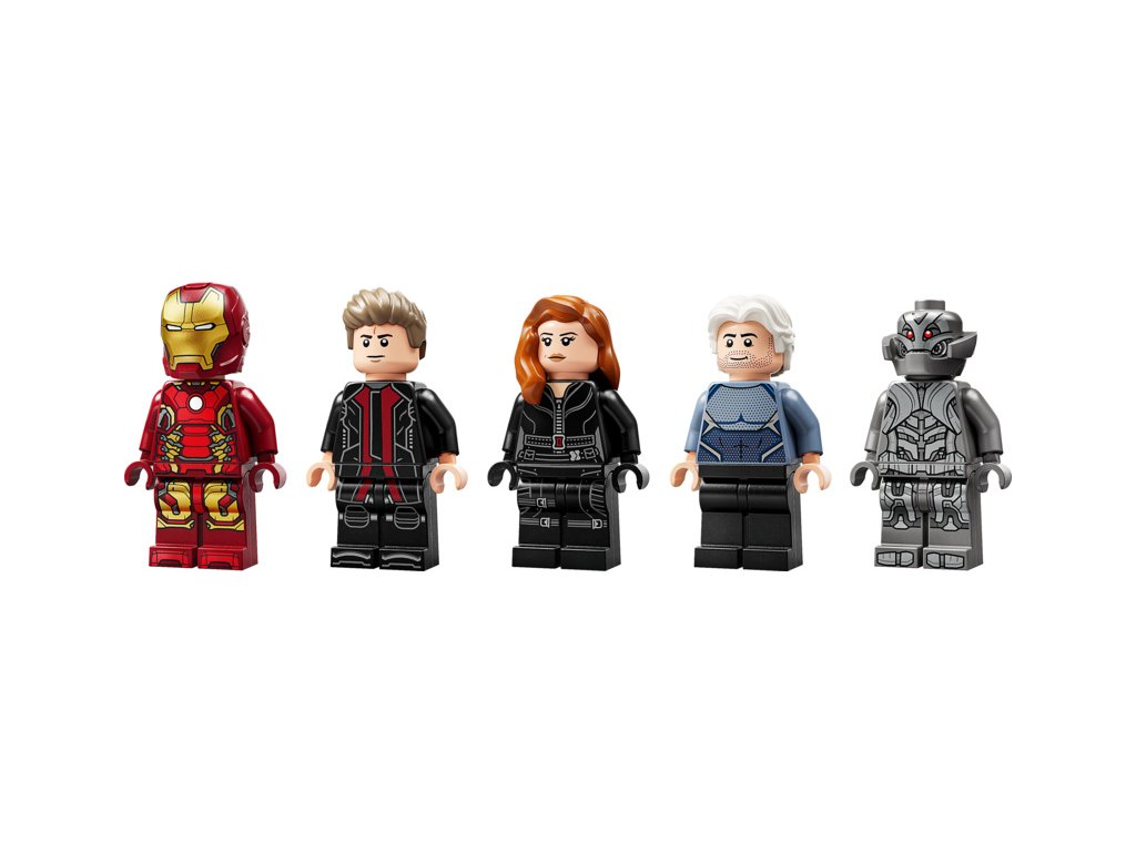 - Minifigurky superhrdinů – Stavebnice obsahuje 5 minifigurek LEGO®: Black Widow s motorkou, Iron Mana, Quicksilvera, Ultimate Ultrona a Hawkeye s lukem a šípy