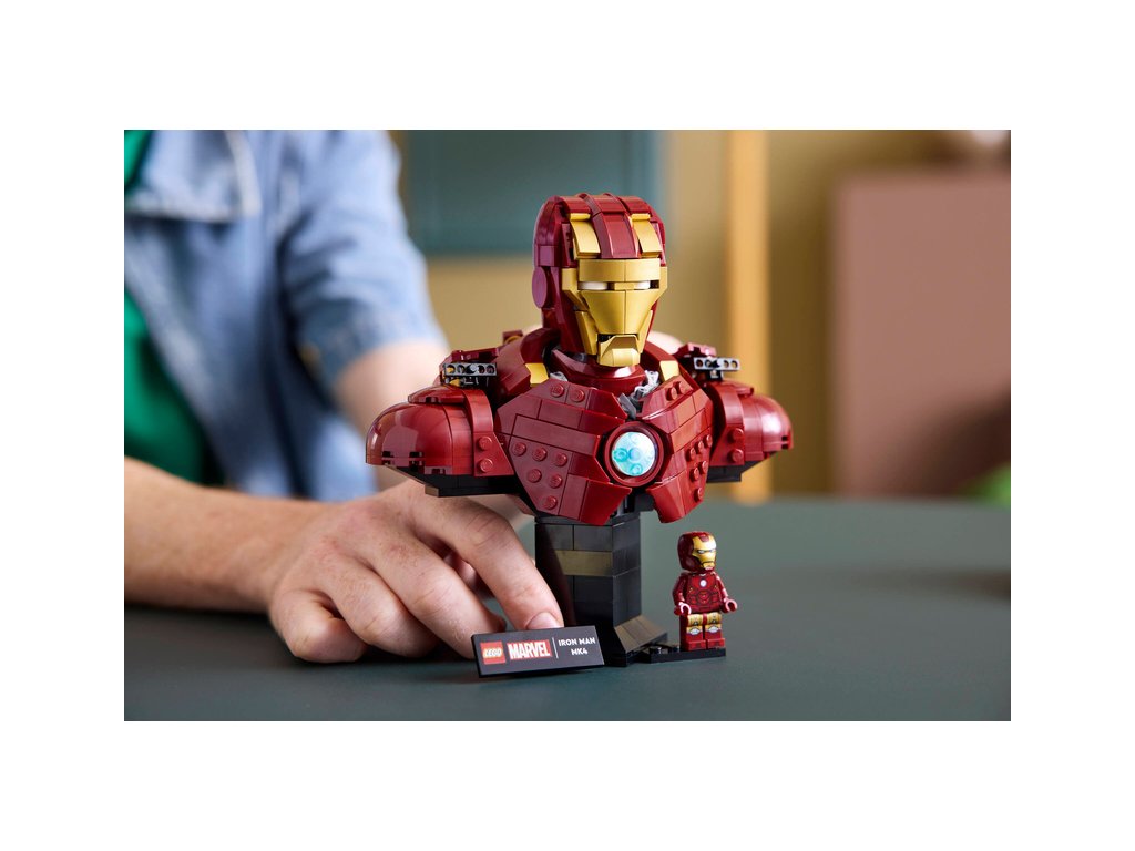 - Figurka LEGO® ǀ Marvel Iron Mana pro dospělé – Sběratelská stavebnice Busta Iron Man MK4 pro zkušené stavitele a dospělé nadšence do superhrdinů