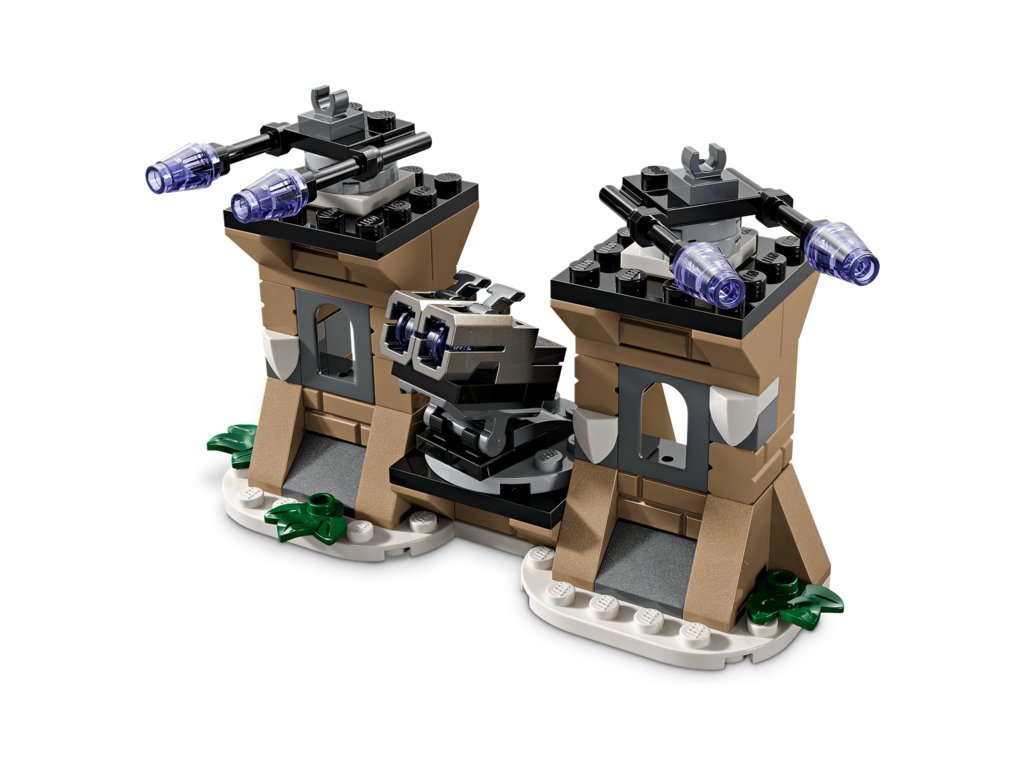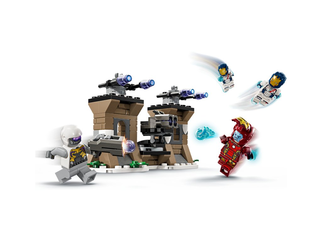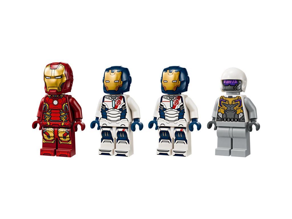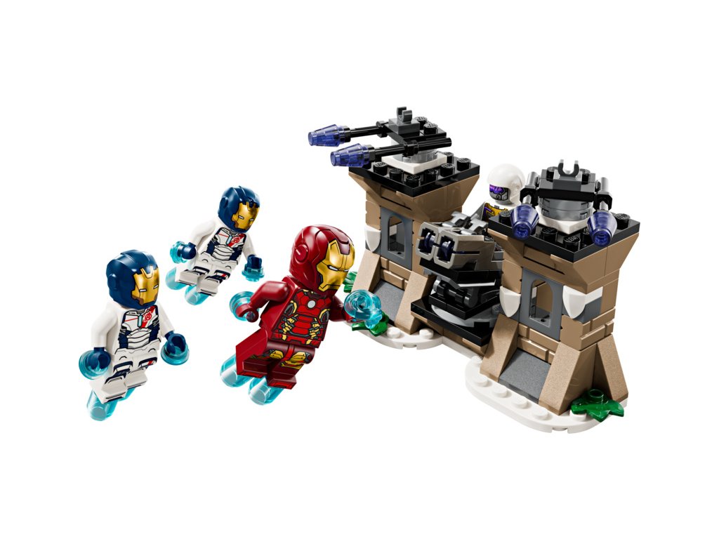 Stavebnice obsahuje 4 minifigurky: Iron Mana, 2 Železné legionáře, a vojáka Hydry. Sestavitelný model Iron Mana má otevírací hledí a drží energetický blaster. Voják Hydry má vystřelovač. Součástí jsou jasně modré kostky, které vytvářejí dojem, že minifigurky létají. Sestavitelný model základny Hydry zahrnuje 2 vystřelovače připevněné k otočné podlaze, kam mohou děti postavit vojáka Hydry, aby mířil na přicházející superhrdiny. Na vrcholu věží základny jsou 2 páry odpalovačů raket (nestřílejících) k odvrácení útoku. K doplňkovým digitálním funkcím se dostanete prostřednictvím aplikace LEGO Builder.