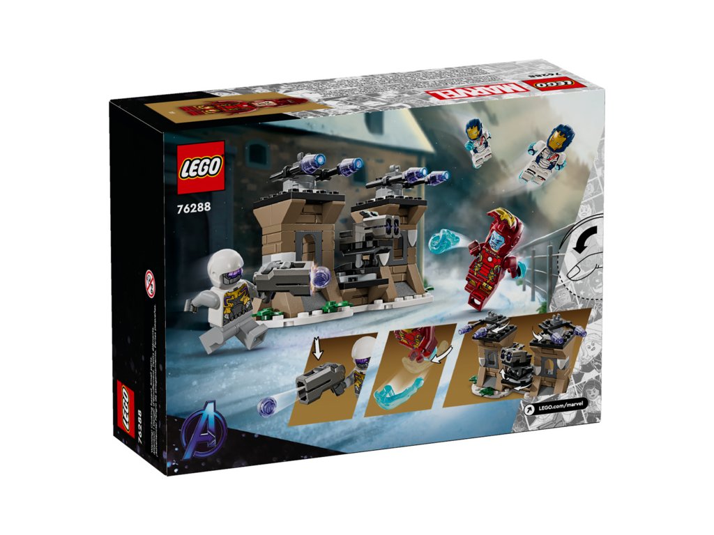 Dobrodružná superhrdinská stavebnice LEGO® Marvel (76288) Iron Man a Železná legie vs. voják Hydry připomíná scénu z filmu Avengers: Age of Ultron od Marvel Studios, kde Iron Man a 2 Železní legionáři letí na opevněnou základnu vojáka Hydry. Tato superhrdinská stavebnice je plná skvělých funkcí a doplňků, takže se jedná o skvělou stavebnici pro děti, zejména pro fanoušky Avengers ve věku od 6 let.
