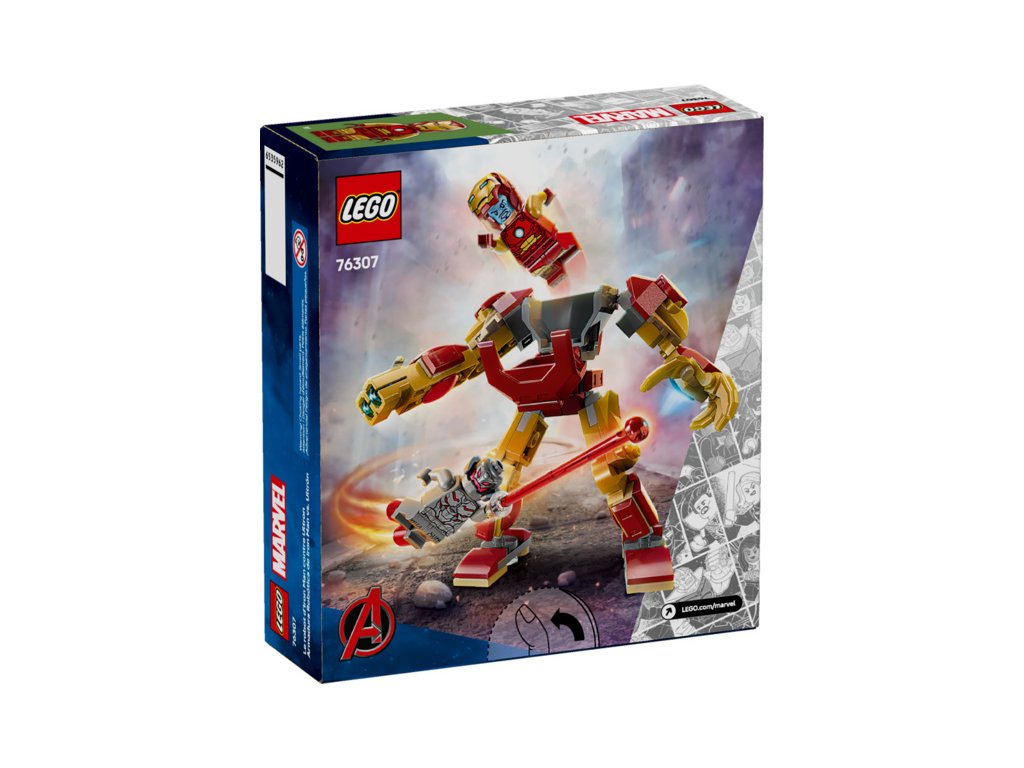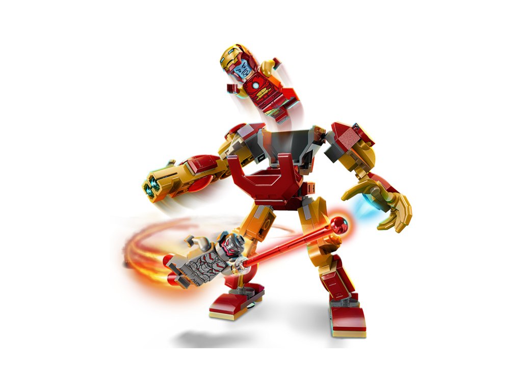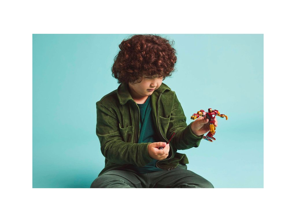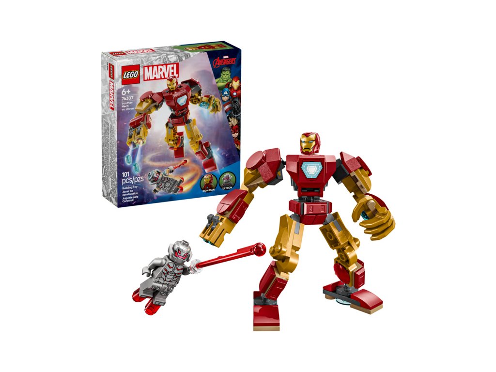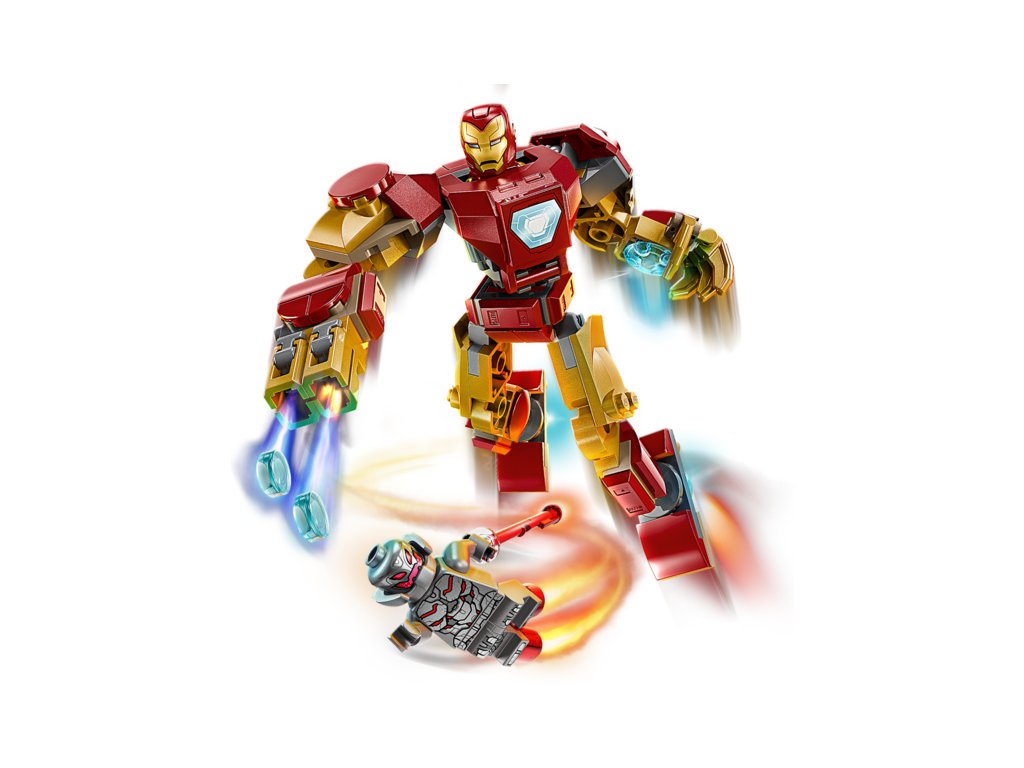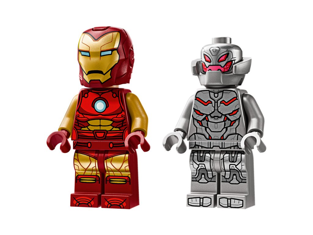 Tato stavebnice robotického obleku LEGO Marvel obsahuje 2 minifigurky:Iron Mana s vyklápěcí helmou a otočnou hlavou s alternativními výrazy a Ultrona s laserovým paprskem. Sestavitelný robot má pohyblivé paže, nohy a prsty a na konci pravé paže má vystřelovač. Trup lze otevřít a odhalit tak kokpit, do kterého můžete usadit minifigurku Iron Mana. Stavitelé můžou přibližovat a otáčet modely ve 3D a sledovat svůj pokrok pomocí zábavné a intuitivní aplikace LEGO Builder pro ještě větší porci digitální zábavy.