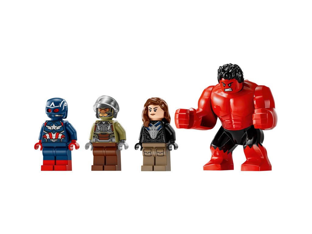 - Minifigurky LEGO® Marvel Avengers – Součástí stavebnice jsou 4 minifigurky: Kapitán Amerika a Falcon (oba mají zatahovací křídla), Red Hulk a Ruth Bat-Seraph
