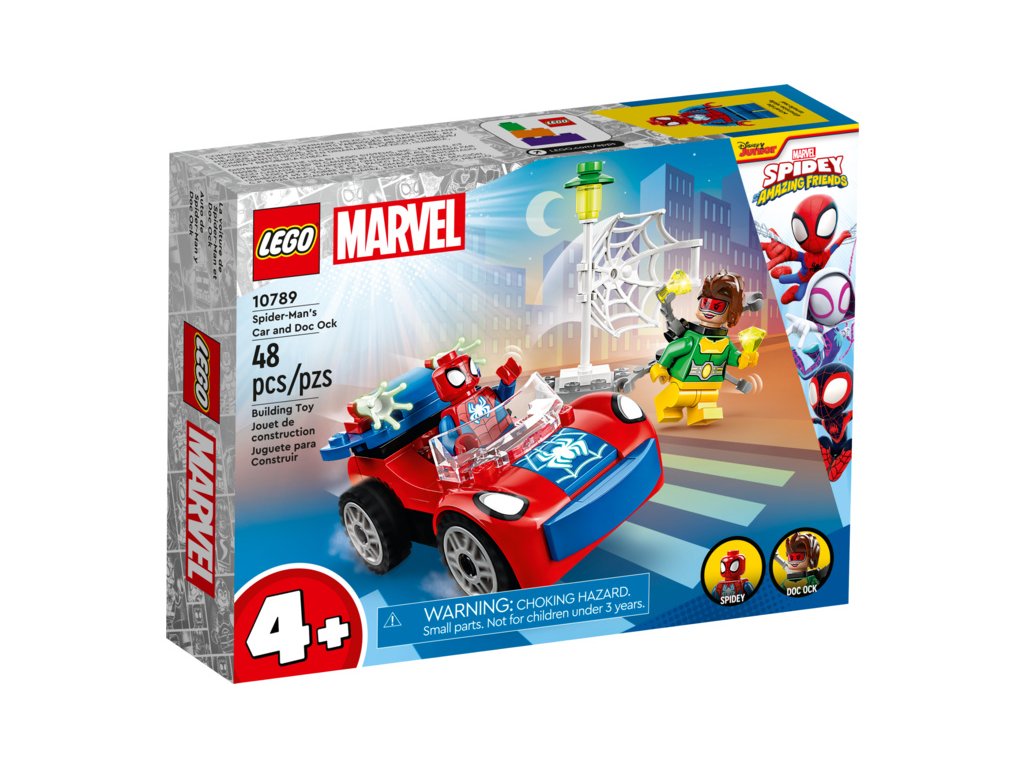 - Svítící superhrdinská akce – Spider-Man v autě a Doc Ock od LEGO® Marvel (10789) obsahuje minifigurky superhrdinů a auto vytvořené speciálně pro děti od 4 let