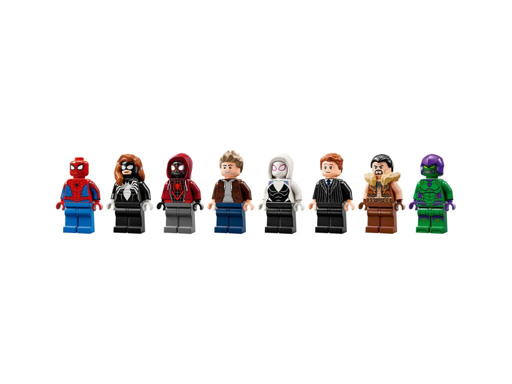 - Minifigurky superhrdinů – Stavebnice obsahuje 8 minifigurek LEGO®: Spider-Mana, Spider-Woman, Milese Moralese, Eddieho Brocka, Ghost-Spider, Normana Osborna, lovce Kravena a Zeleného goblina