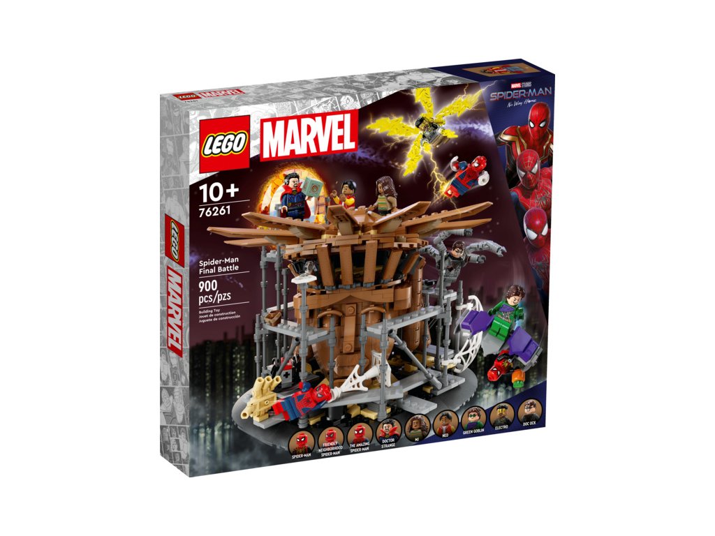 Stavebnice LEGO® Marvel (76261) Spider-Manova konečná bitva znázorňuje senzační rozhodující souboj z filmu Spider-Man: Bez domova od Marvel Studios. Je plná kultovních postav a akce plné pavučin a tato oslava Spidermana nadchne fanoušky od 10 let.